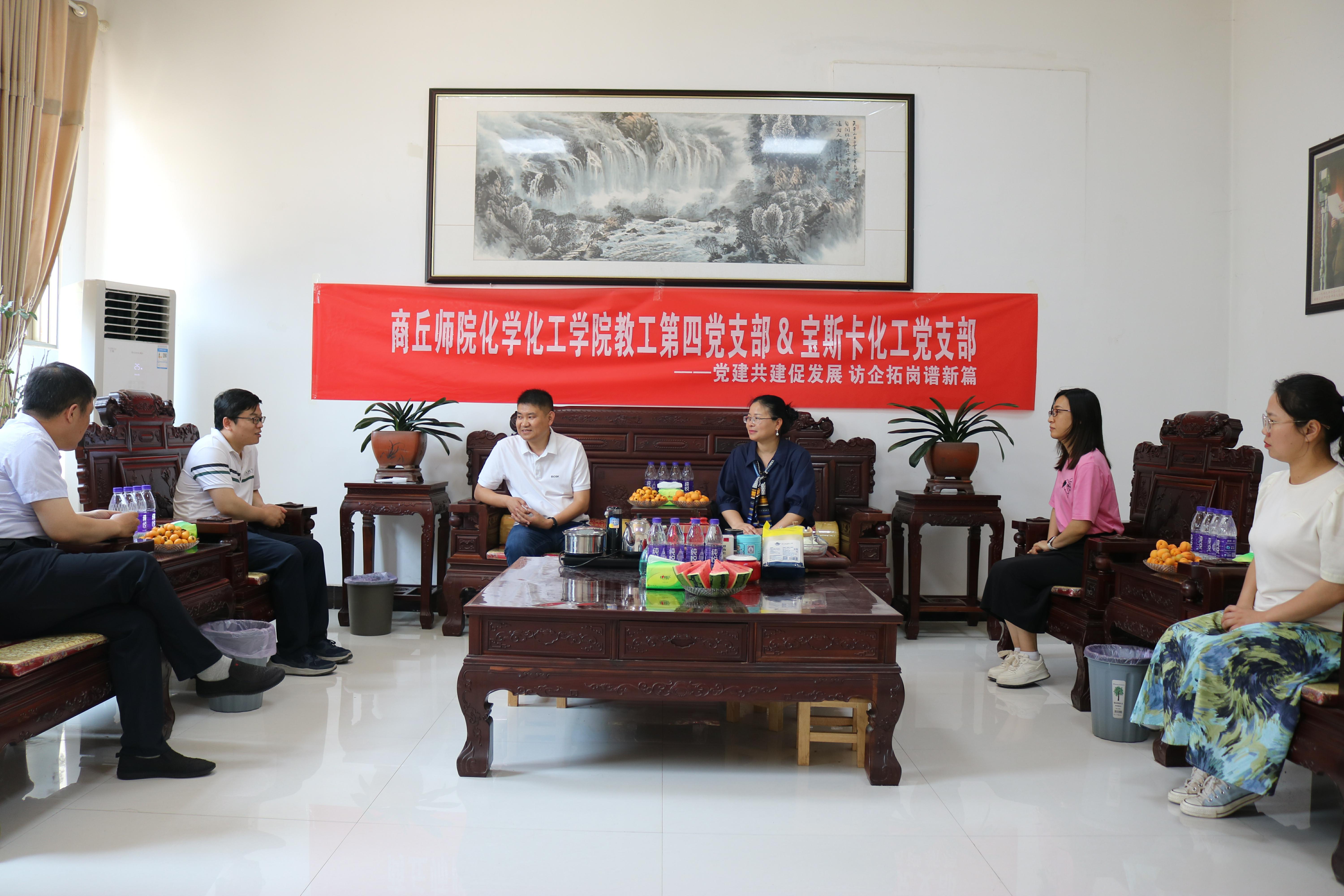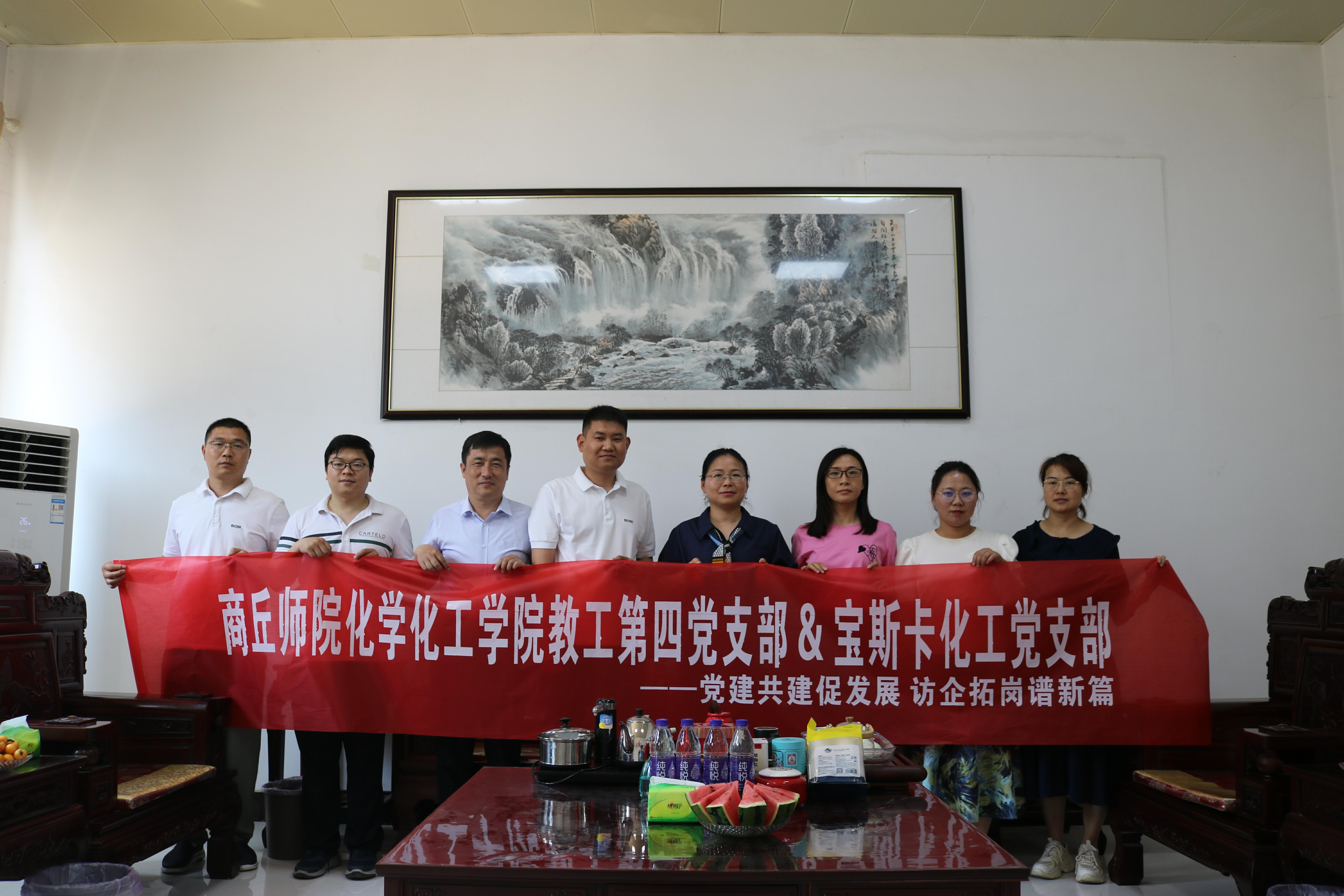 2025年5月20日,金年会jinnianhuicom金年会jinnianhuicom教工第四党支部在学院党委副书记张颜梅、党支部书记陈亚的带领下,一行5人赴宝斯卡(商丘)化工有限公司开展党支部共建仪式暨访企拓岗专项活动。双方围绕党建共建、产学研合作、人才联合培养及毕业生就业等核心议题展开深入交流,并签署共建协议,标志着校企协同创新迈入新阶段。