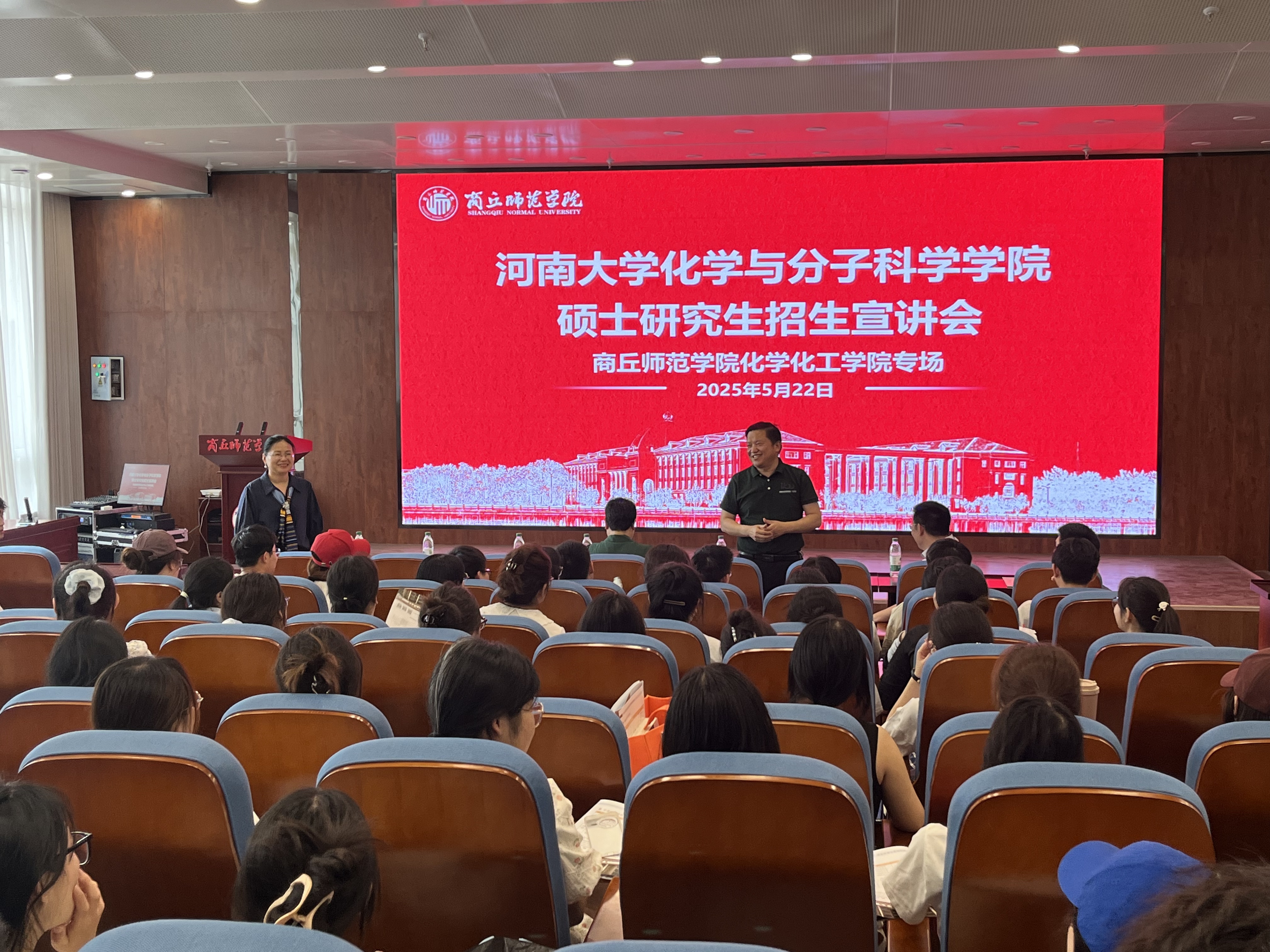 5月22日,河南大学化学与分子科学学院硕士研究生招生宣讲会在金年会睢阳校区工科实训大楼203报告厅顺利举行。河南大学化学与分子科学学院党委书记常凤香一行5人走进金年会进行交流指导。通过政策解读、学术分享与互动答疑,为金年会备战考研学生提供精准、有效的指导与帮助。会议由金年会jinnianhuicom党委副书记张颜梅主持。