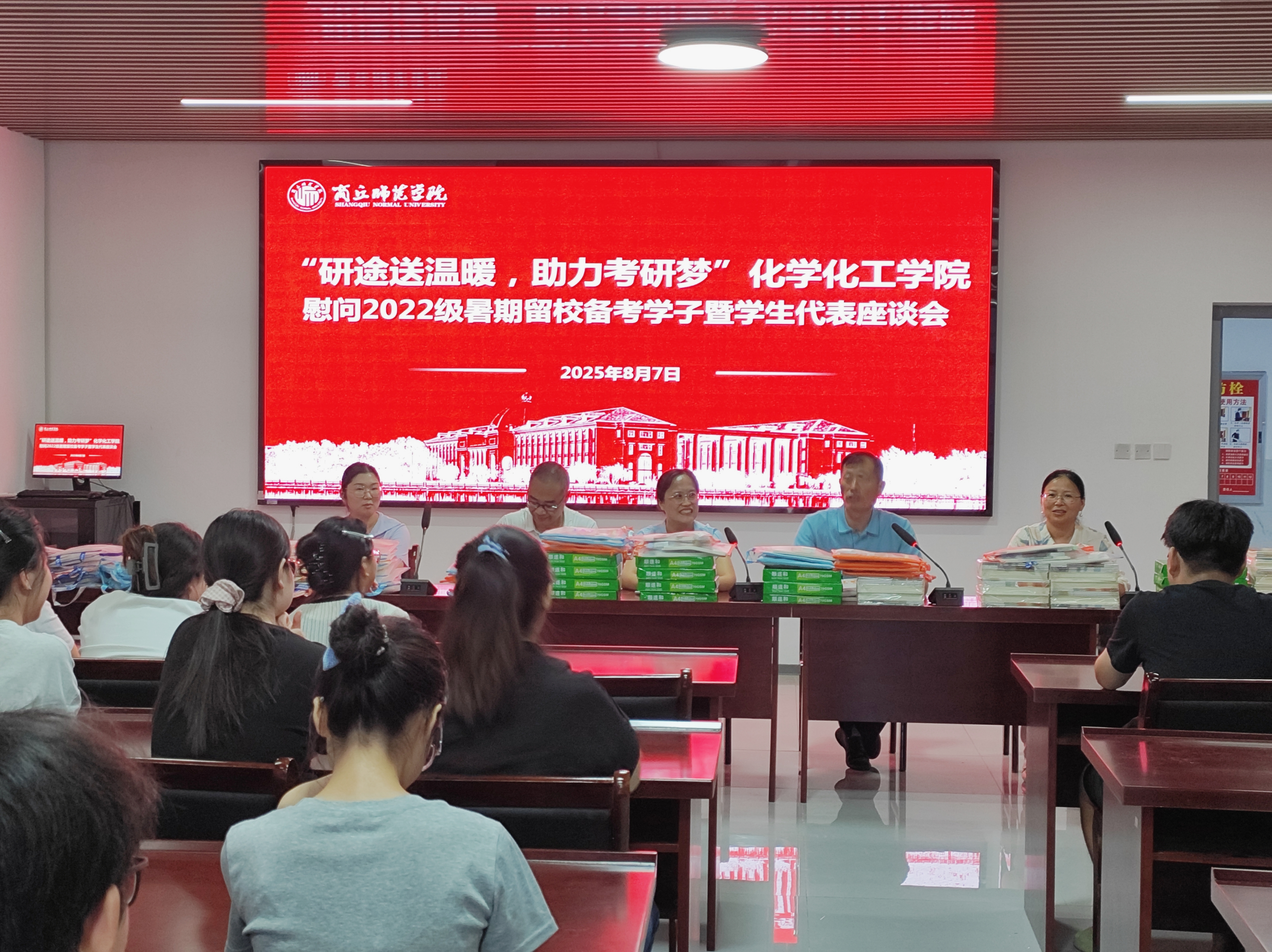 为关心关爱暑期留校备考学生,进一步助力考研学子坚定信心、安心备考,8月7日,金年会jinnianhuicom开展“研途送温暖,助力考研梦”慰问2022级暑期留校考研学生暨学生代表座谈会。学院领导班子成员、2022级辅导员王舒欣及留校备考学生代表参加座谈,会议由学院党委副书记张颜梅主持。