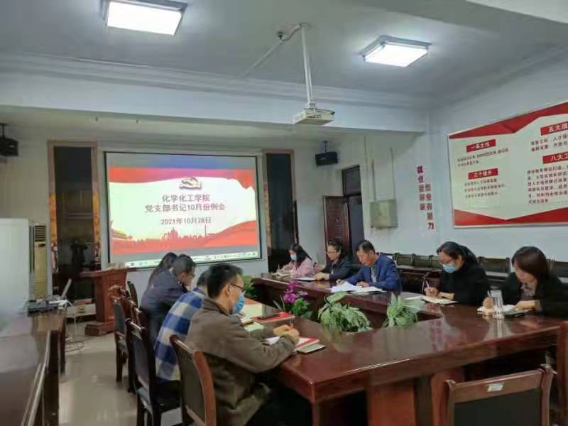 10月28日,金年会jinnianhuicom召开党支部书记例会,传达学习《全面推行党支部主题党日活动的意见》和《关于加强和完善基层党支部“三会一课”制度的实施意见》文件精神,院党委书记李海涛,副书记张颜梅、全体党支部书记参加,李海涛主持会议。