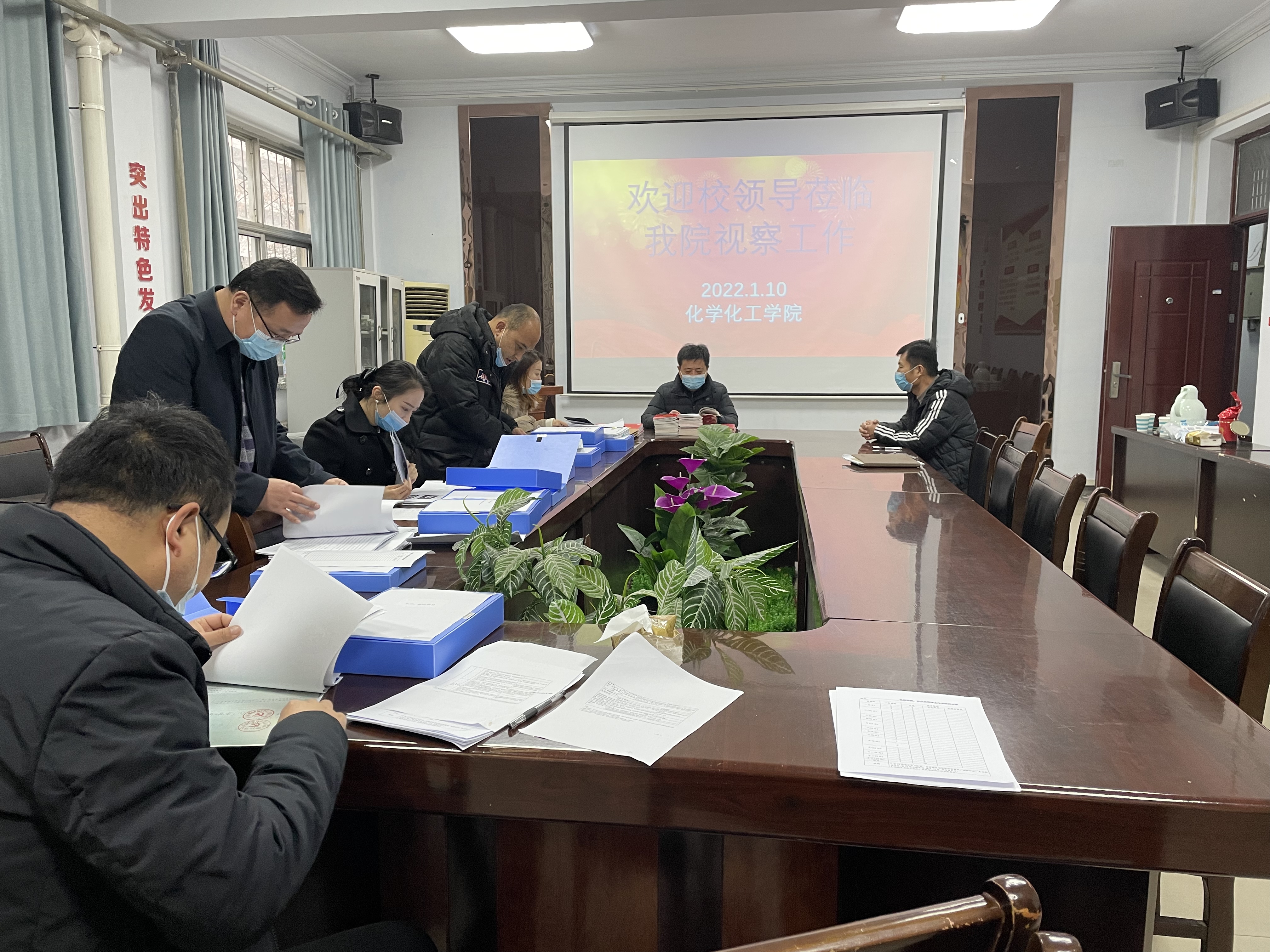 检查伊始,张辉就工作组进行现场检查考核的目的、工作要求和考核内容进行说明。金年会党委书记李海涛简要汇报了学院党委2021年度工作开展情况。随后考核工作组对照《金年会jinnianhuicom基层党建工作考核办法》,对金年会2021年度党建工作的档案材料进行了现场查阅。
