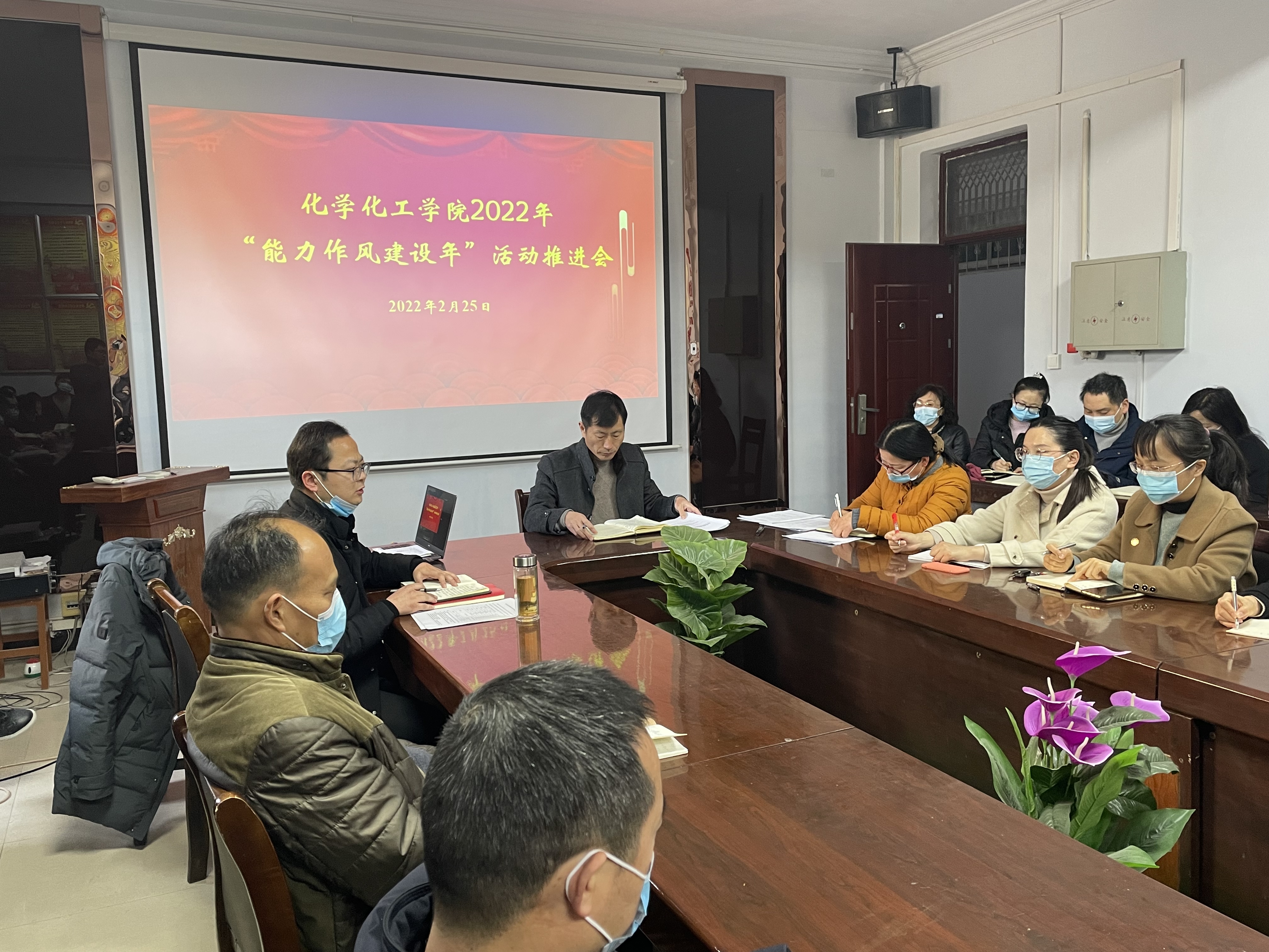 2022年2月25日,金年会jinnianhuicom在睢阳校区7号楼会议室召开“能力作风建设年”活动推进会,学院党委书记李海涛、党委副书记张颜梅、副院长王涛以及全体教职工参加会议。会议由李海涛主持。