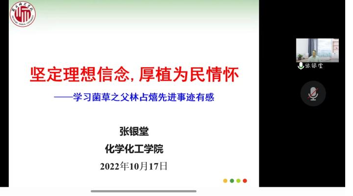为提高入党积极分子的党性觉悟、党性修养,明确自身目标与发展方向,10月17日,金年会jinnianhuicom在线上举行以“坚定理想信念,厚植为民情怀—学习菌草之父林占熺先进事迹有感”为主题的入党积极分子党课培训,由院党委副书记、院长张银堂同志主讲,全体入党积极分子参加。