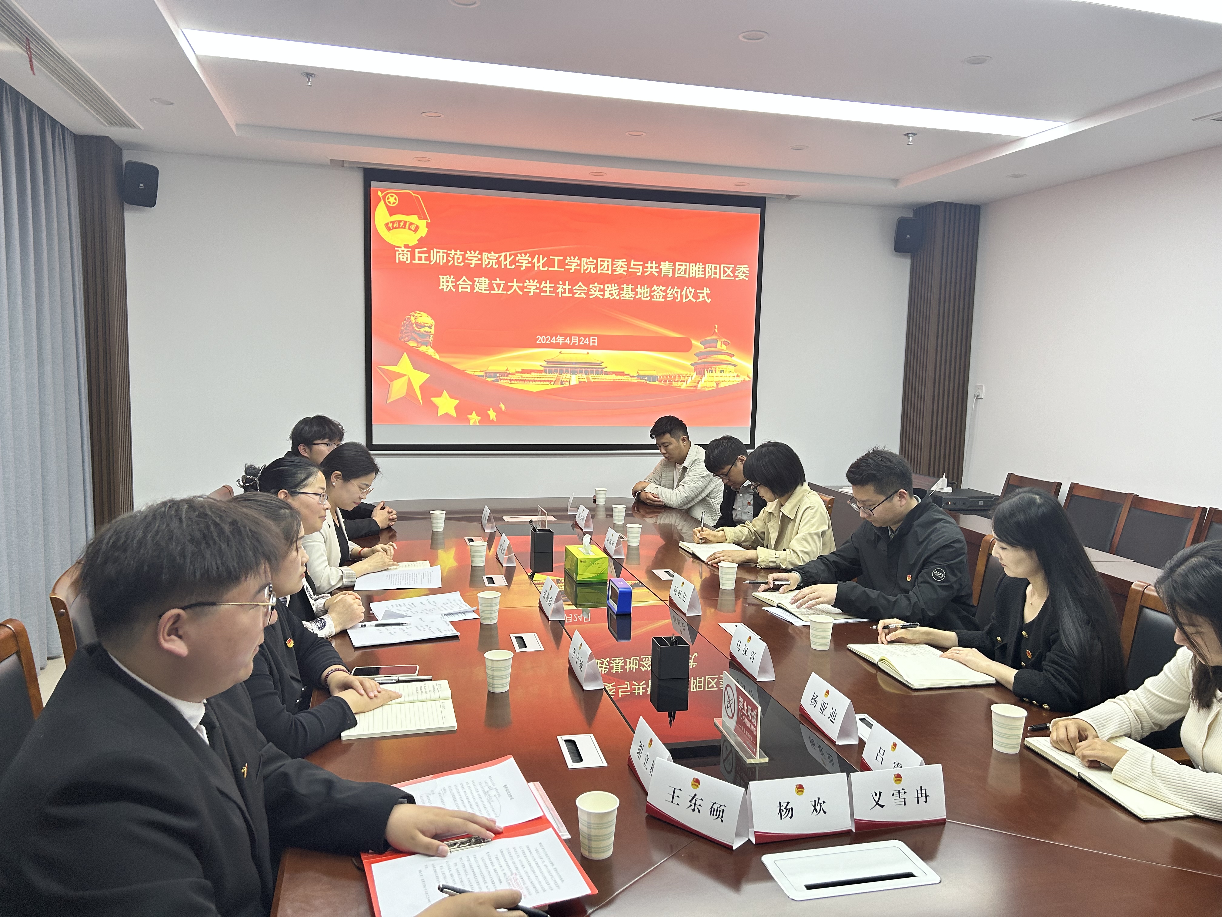 为深入学习习近平新时代中国特色社会主义思想和贯彻党的二十大精神,组织高校大学生走进基层广泛开展社会实践,提高大学生的社会能力,同时推动“大学生社区实践计划”制度化、常态化,金年会jinnianhuicom金年会jinnianhuicom团委联合共青团睢阳区委建立大学生社会实践基地。近日,签约仪式在睢阳区团委举行。金年会jinnianhuicom金年会jinnianhuicom党委副书记张颜梅、院团委书记郭家瑞一行8人,共青团睢阳区委书记何虹以及团区委全体工作人员参加签约仪式。