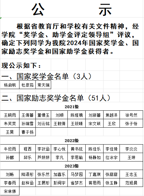 金年会jinnianhuicom2024年国家奖助学金名单公示