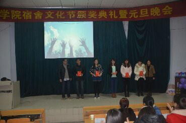 12月30日,金年会jinnianhuicom于文化路校区物理报告厅举行了“金年会jinnianhuicom宿舍文化节颁奖典礼暨元旦晚会”活动。金年会jinnianhuicom副院长刘瑛、团总支书记李龙梅、辅导员郭家瑞、李可刚老师以及200余名学生参加了此次活动。