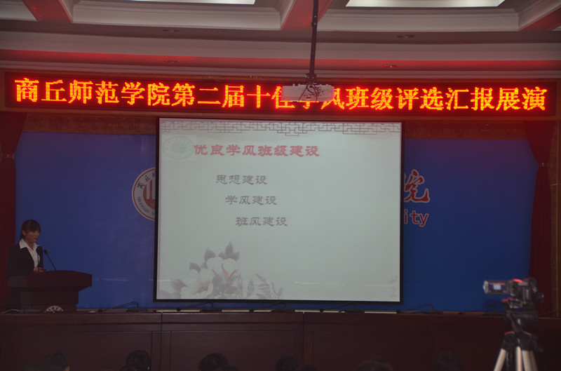 12月16日晚,由金年会学生处主办、金年会jinnianhuicom承办的第二届十佳学风班级评选汇报展演,在平原路校区一号行政楼113会议室举行。校党委副书记陈中亚、副校长陈向炜以及组织部、学生处、校团委、教务处、招生与就业指导中心的部分领导、各学院党总支副书记和200余名学生一同观看了展演。