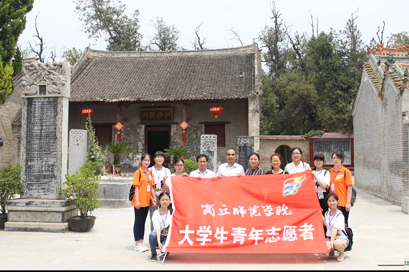 金年会jinnianhuicom理论普及宣讲团“致敬红心”实践活动走近老党员实践团历时三天,在团长赵聪聪的带领下井然有序地进行。7月3日上午,在校团委副书记张彤、金年会jinnianhuicom党总支书记邱友良、副院长刘瑛和团总支书记李龙梅的带领下,实践团来到了虞城县伊尹祠。