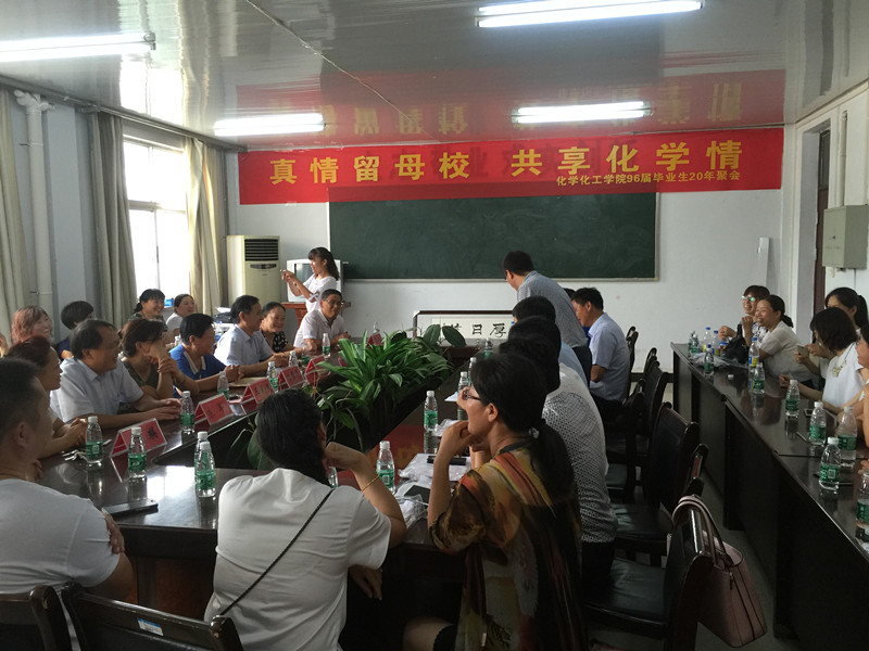 2016年8月13日上午,金年会jinnianhuicom1996届毕业生重返母校,在7号办公楼院办会议室共庆毕业二十周年。金年会jinnianhuicom党总支书记邱友良、原金年会jinnianhuicom党总支书记刘素芝、副书记马淮凌,9441班原班主任王凤民、9442班原班主任瞿鹏、金年会jinnianhuicom副院长刘瑛、原化学系教学秘书朱军等老师出席座谈会,座谈会由96届校友徐翔、宋相国主持。