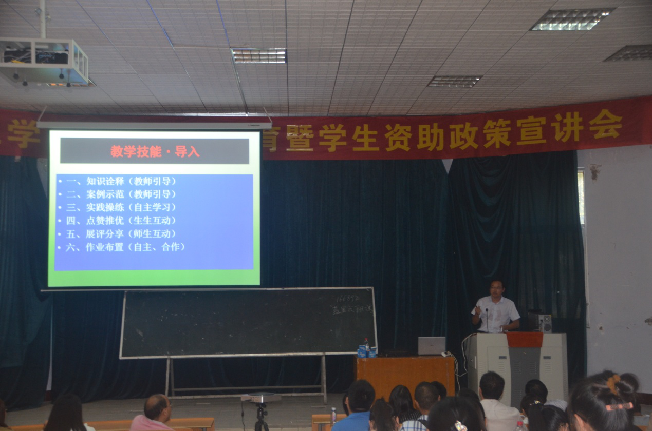 为大力推进课程教学范式改革,推动学院转型发展,9月23日下午,金年会jinnianhuicom在文化路校区物理与电气信息学院报告厅举行了教学范式改革观摩课,特邀请物理与电气信息学院赵世华博士与文学院王立副教授开展教学范式改革观摩课活动。金年会jinnianhuicom党总支书记邱友良、副院长瞿鹏、翟滨、刘瑛出席会议,刘澜涛博士等50余位专业老师及2013级参加教育实习的学生聆听了此次教学观摩课,会议由金年会jinnianhuicom副院长瞿鹏主持。