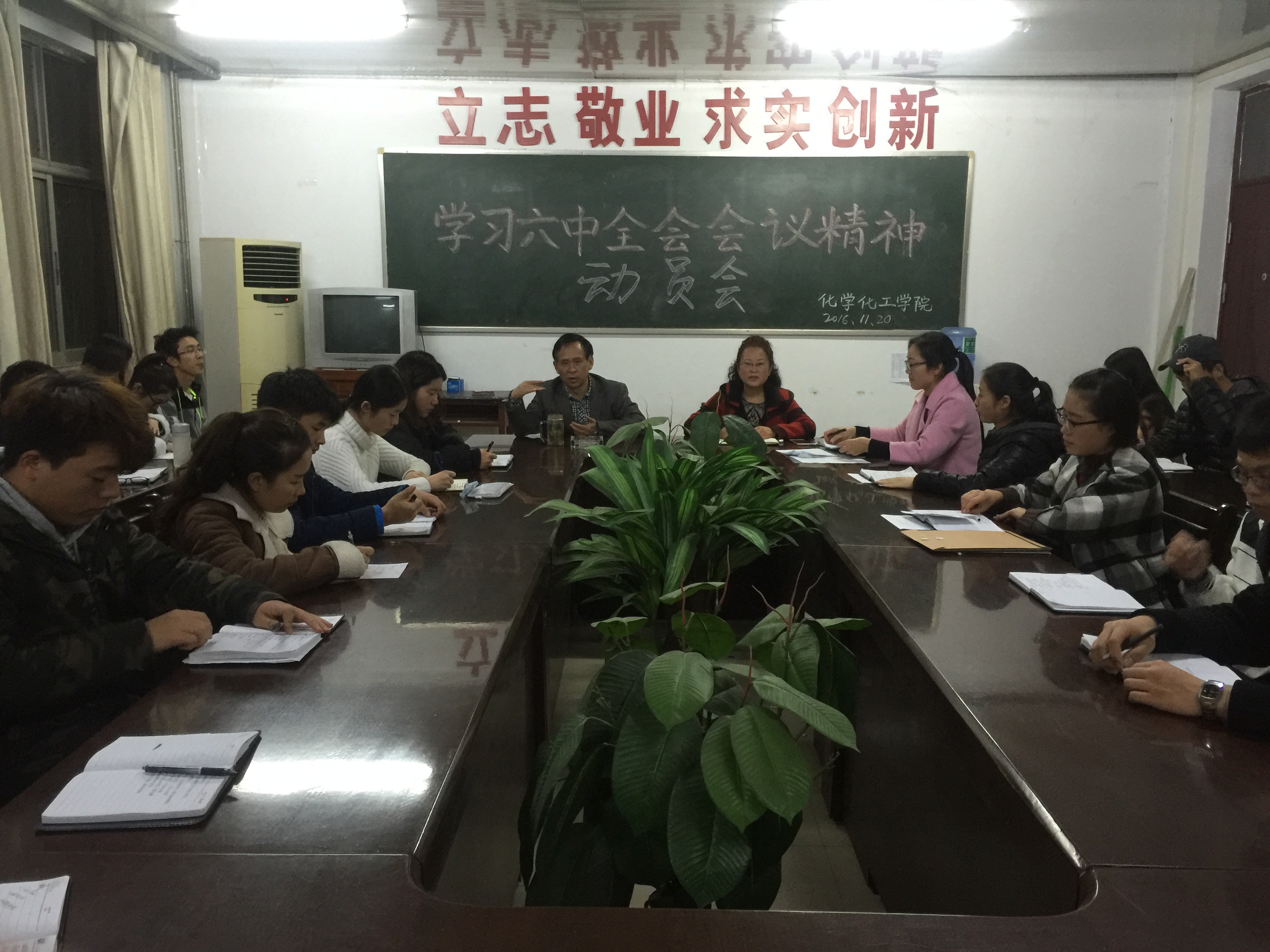 11月18日、11月20日金年会jinnianhuicom师生分别在金年会会议室召开了《党的十八届六中全会精神动员会》,金年会党总支书记邱友良,副院长瞿鹏、副院长翟滨、副院长刘瑛和全体教师及团总支学生会全体成员参加了会议。会议由邱友良书记主持