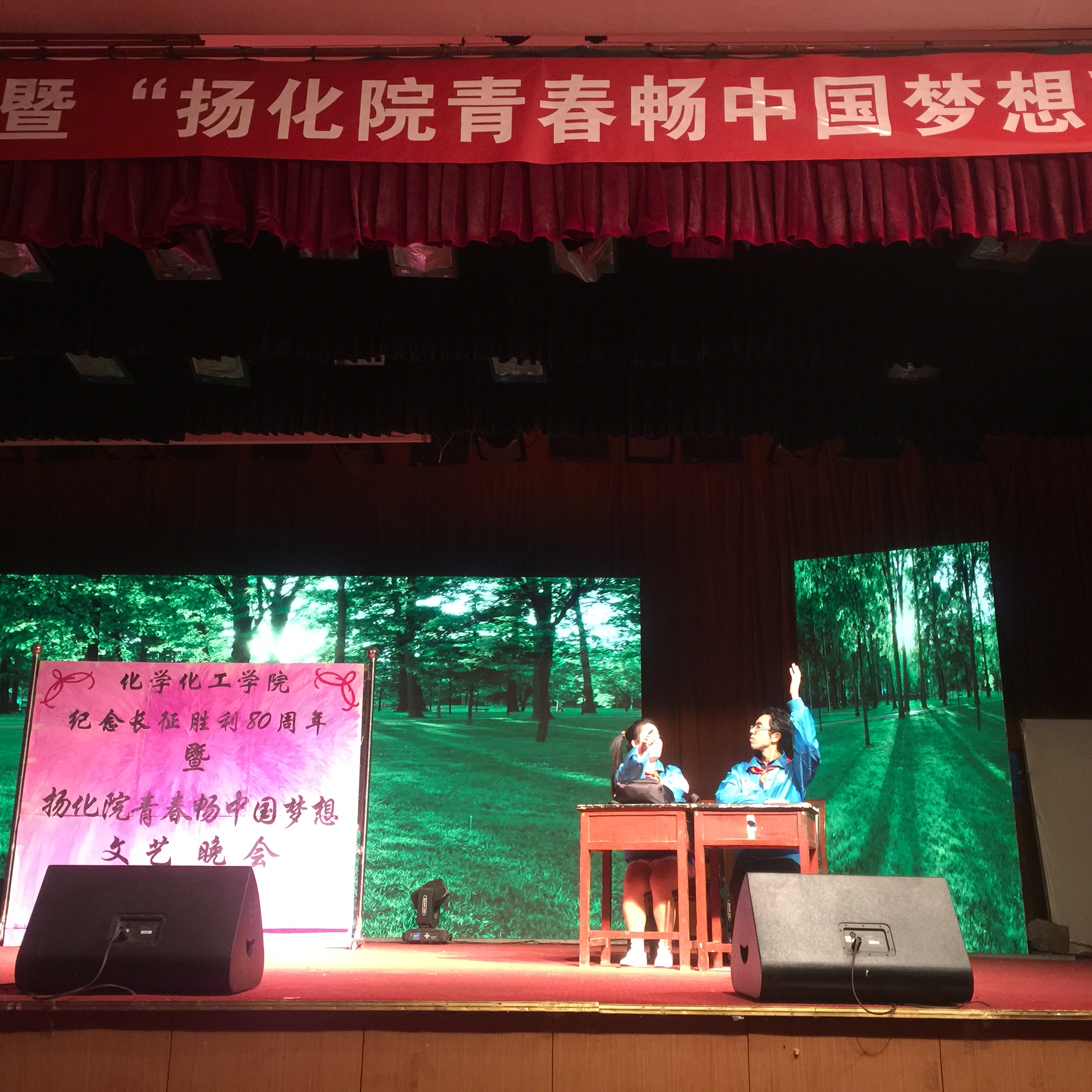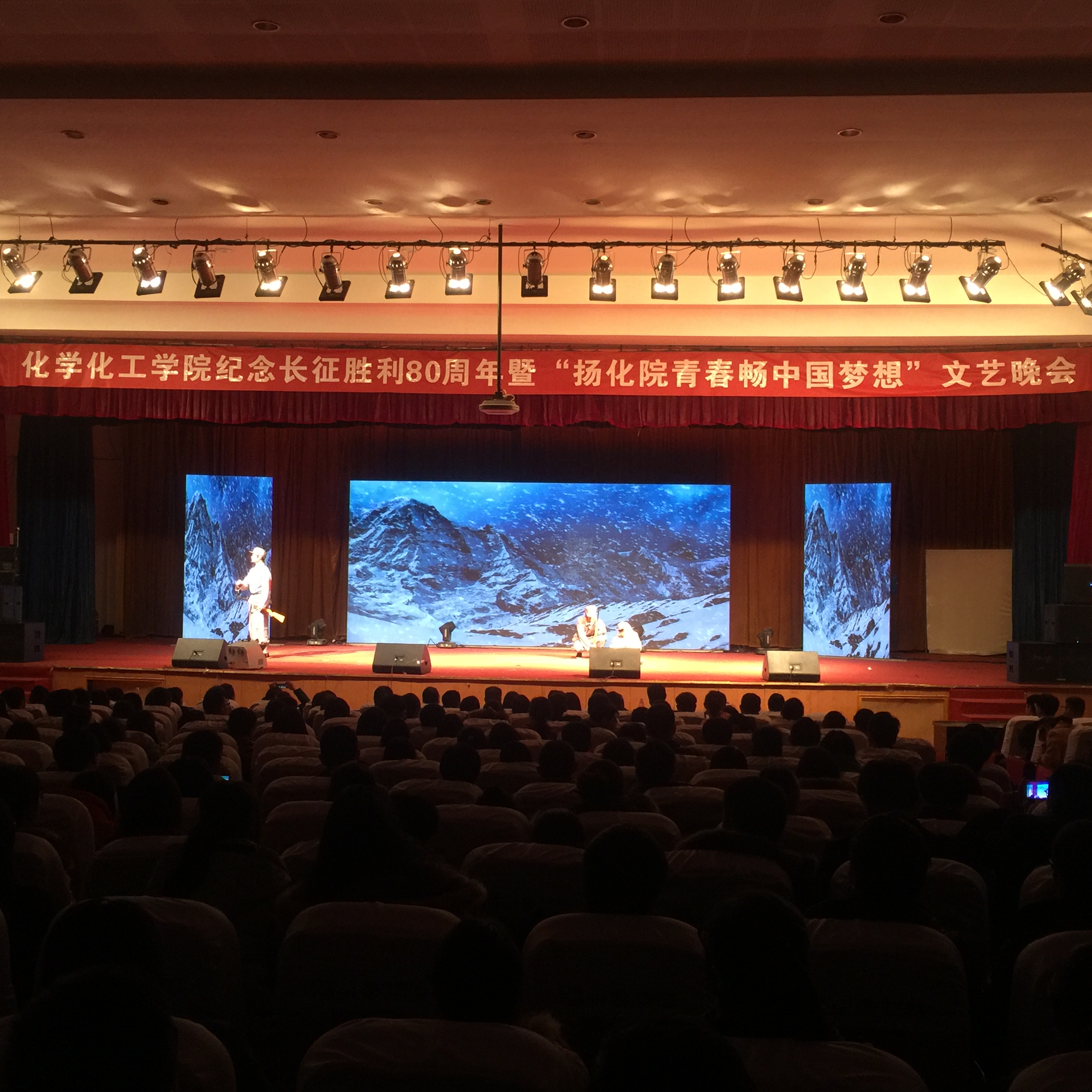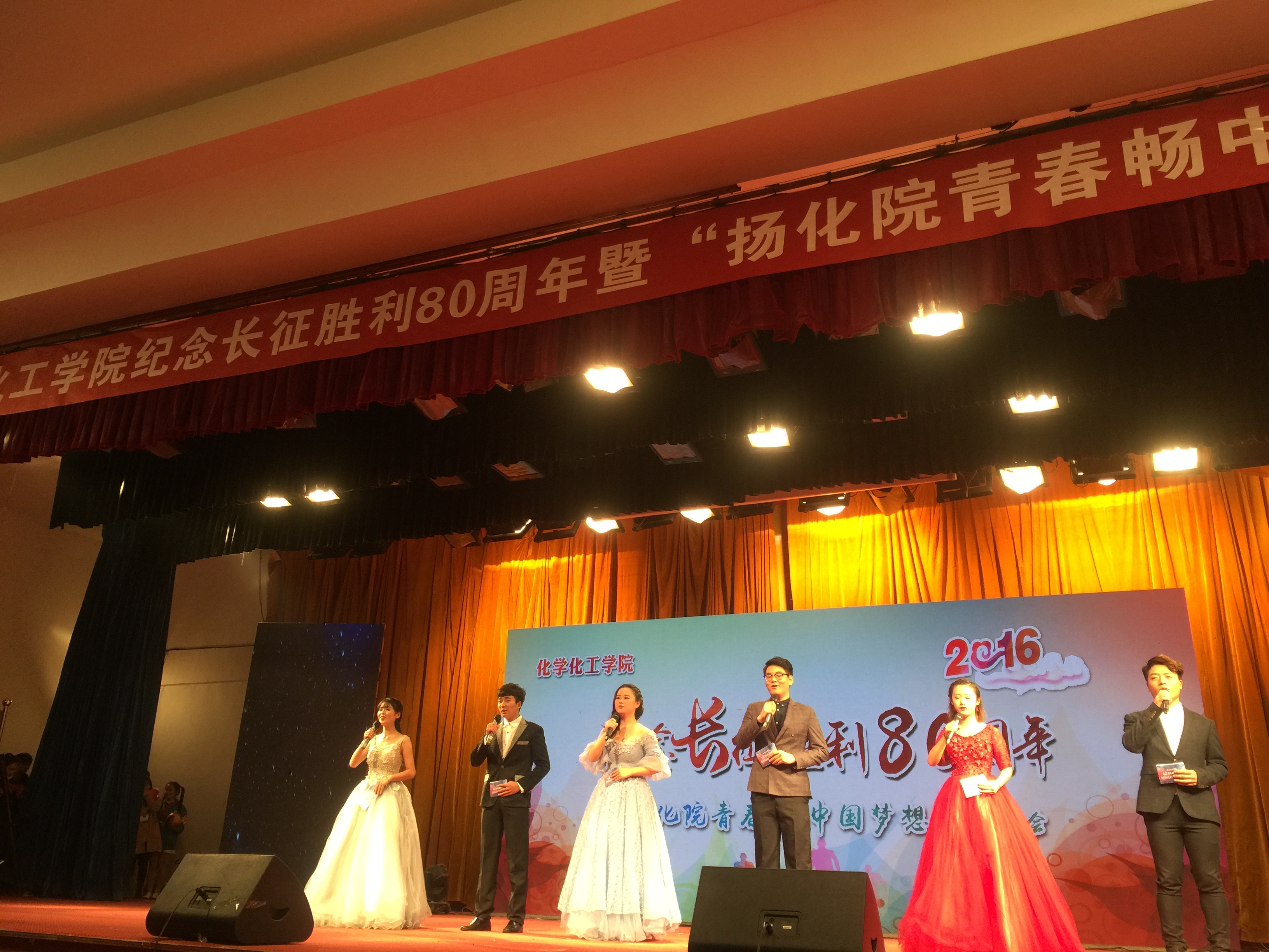 为纪念长征胜利80周年,展示大学生青春洋溢的风貌,12月2日晚,金年会jinnianhuicom在文化路校区大礼堂举办了以“纪念长征胜利80周年暨扬化院青春,畅中国梦想主题文艺晚会。校团委书记杨莹莹、学生处处长王晓征、后勤服务中心主原金年会jinnianhuicom党总支书记邱友良、发展规划处处长原金年会jinnianhuicom副院长翟滨、电子电气工程学院党总支书记姚晓慧、生物与食品学院党总支书记闫永峰出席此次晚会,金年会全体领导、部分教师、国培学员以及金年会近800名学生共同观看了晚会。