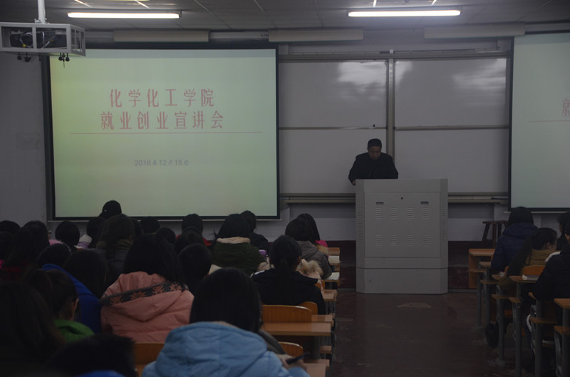 12月15日晚,金年会jinnianhuicom于文化路校区1#307教室举行就业创业宣讲会,金年会党总支书记韩忠民、院长瞿鹏、副书记刘瑛出席了宣讲会,教学秘书胡春华与金年会近300名学生参加了宣讲会。宣讲会由韩忠民书记主持。