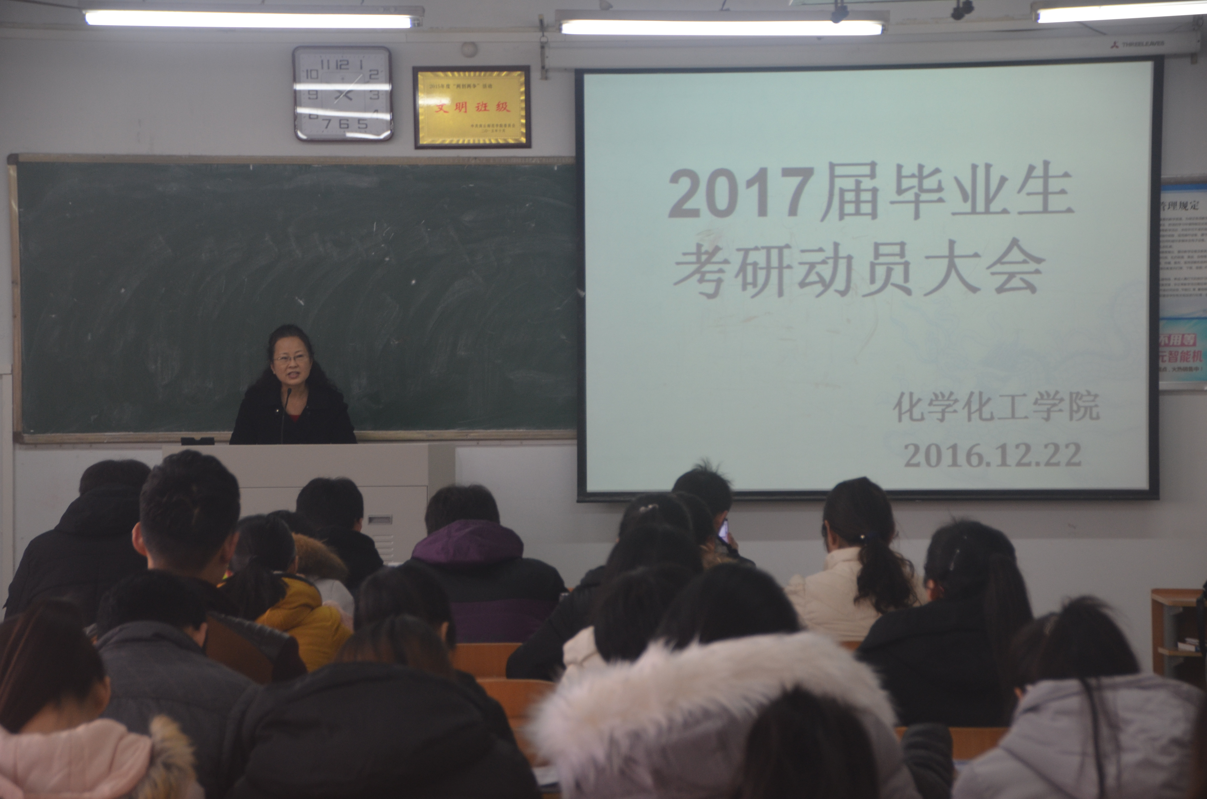 2016年12月22日上午,金年会jinnianhuicom在1号教学楼408教室组织召开“考研动员大会”。金年会大四所有考研学生参加了本次会议,大会由金年会党总支副书记刘瑛主持。