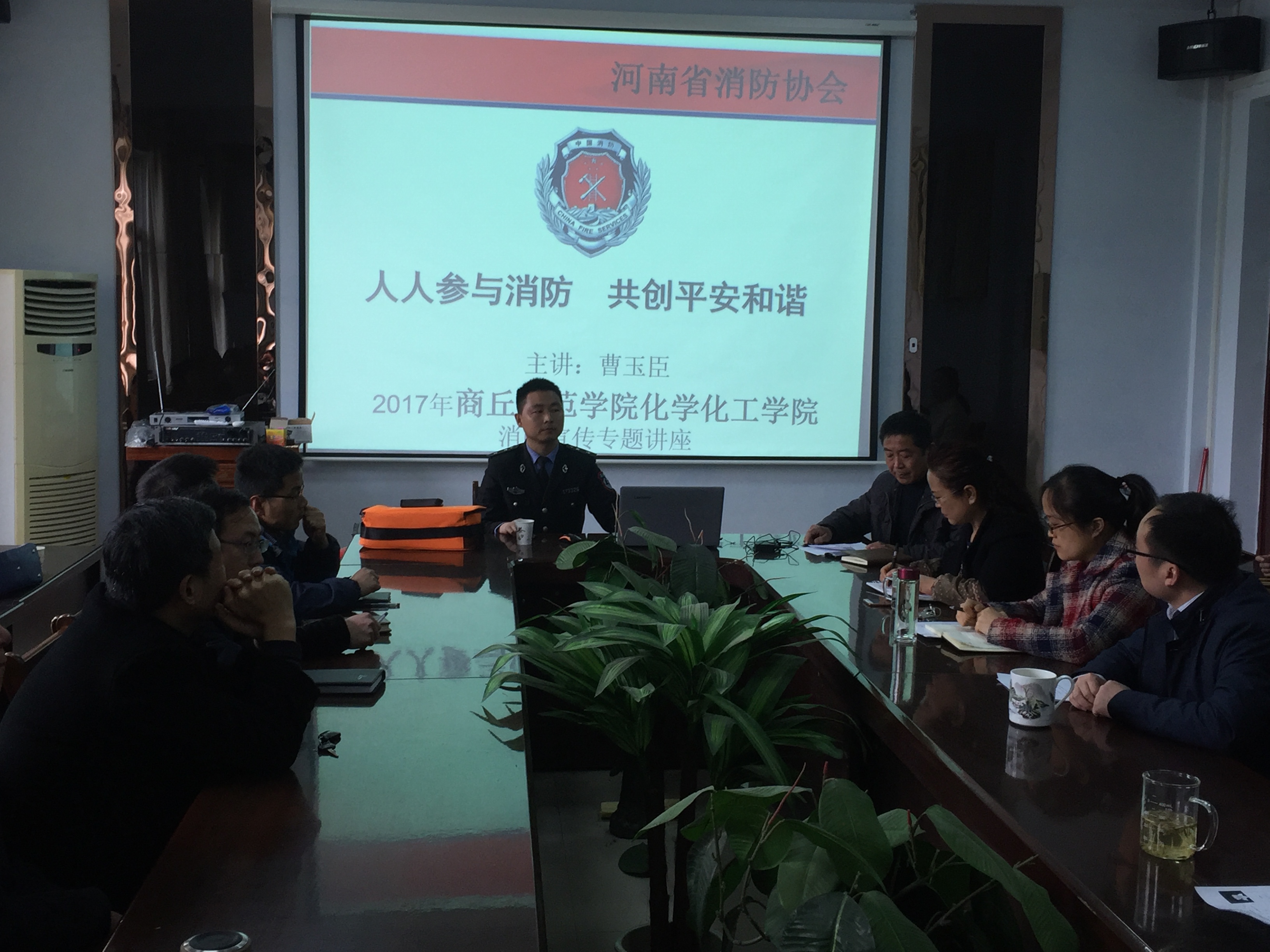 曹教官以提升“四个能力”建设为切入点,结合近几年的重大火灾案例分析、工作生活遇到突发事件的处理方法等作为重点进行讲解。