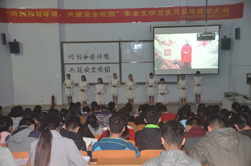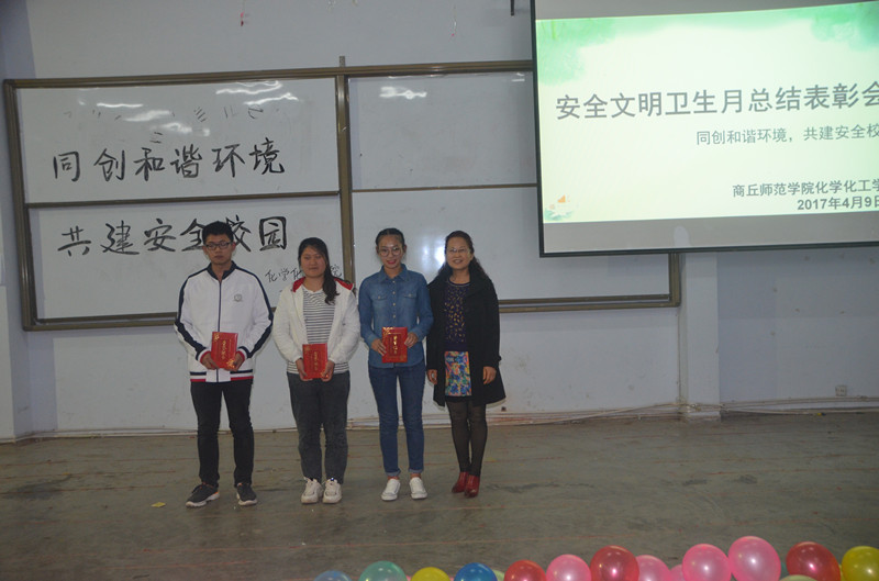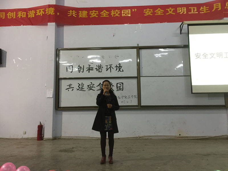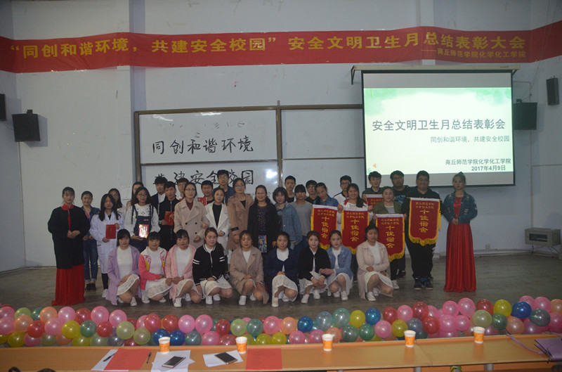 4月9日晚,金年会于金年会文化路校区文工团举办了“同创和谐环境、共建安全校园”安全文明卫生月总结表彰大会,金年会党总支副书记刘瑛、团总支书记李龙梅出席了此次会议,团总支学生会全体成员及2016级全体同学参加了此次总结表彰大会。