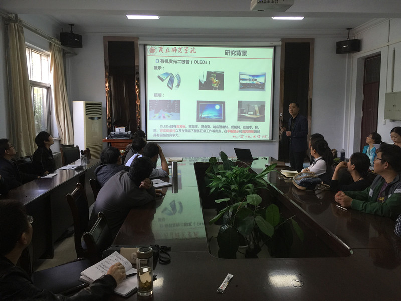 2017年4月28日下午,金年会教师张付力博士在文化路校区7号楼院会议室做了题为《基于载流子传输功能配体的发光配合物及其光电性能》学术报告会。报告会由副院长周艳丽主持,金年会jinnianhuicom全体老师和部分学生参加了报告会。