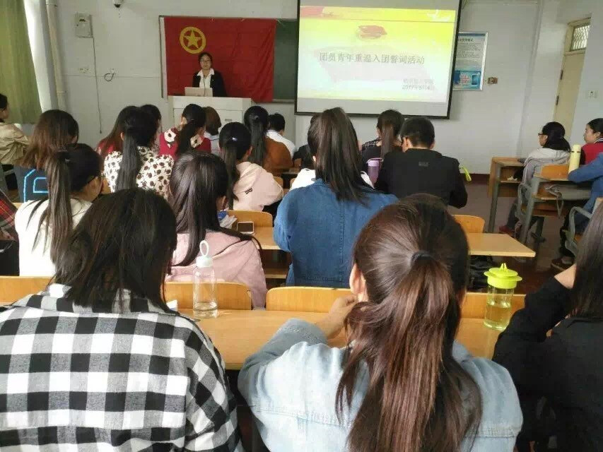 为纪念“五四”运动98周年暨中国共青团建团95周年,继承和弘扬伟大的“五四”精神,积极响应共青团中央在全体共青团员中开展的“一学一做”教育实践活动,金年会团总支学生会于5月4日中午在金年会文化路校区1#404教室举办了“团员青年重温入团誓词活动”,团总支书记李龙梅出席了此次活动,金年会16级新能源团支部全体团员青年参加了此次活动,活动由李龙梅老师主持。