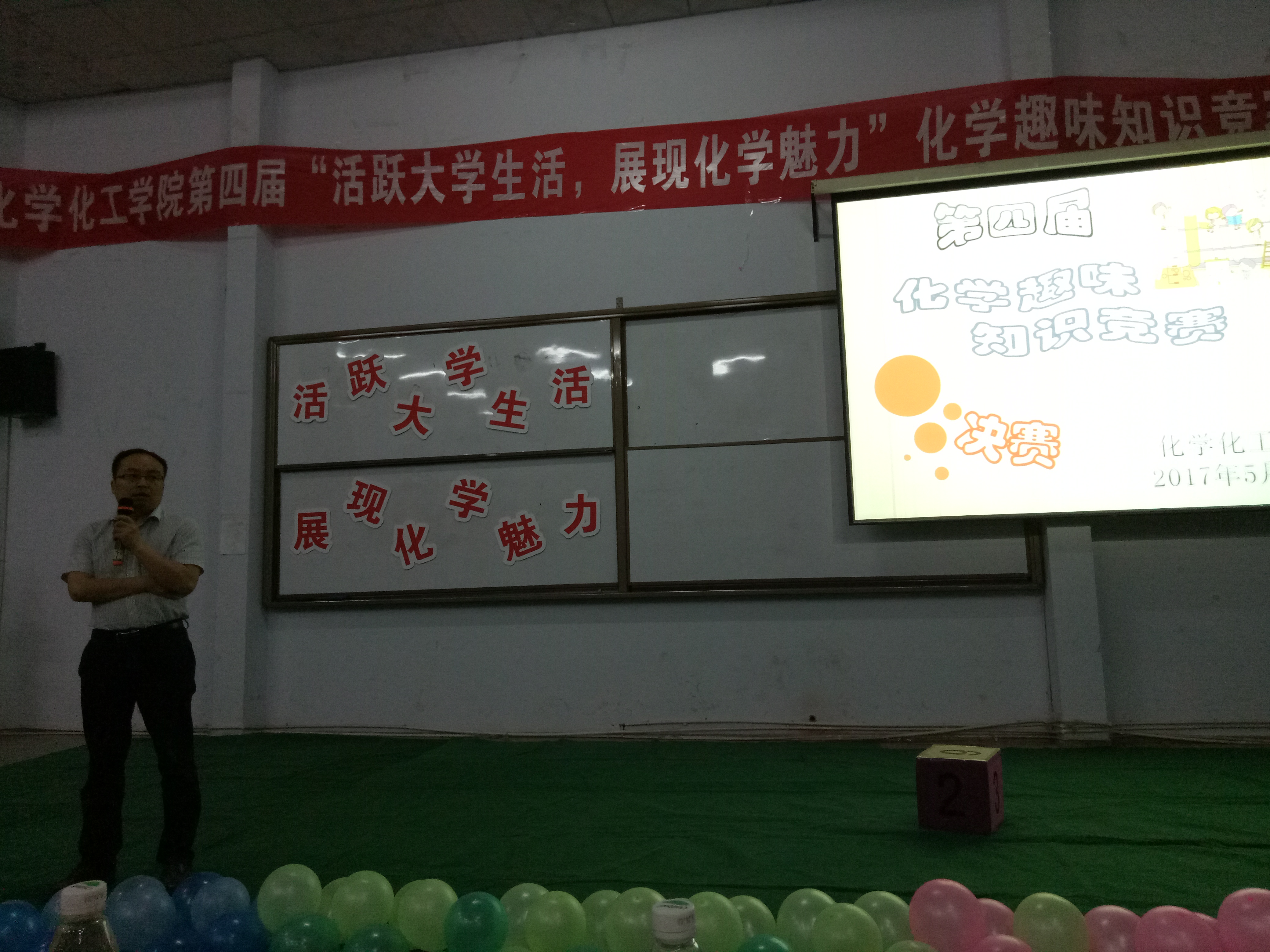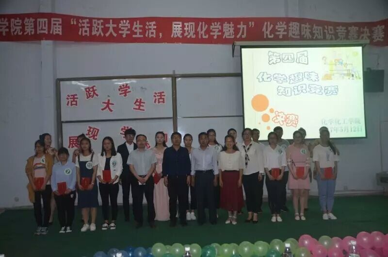为了让同学们感受化学的魅力与趣味,在快乐中增加知识,5月12日晚,金年会于金年会文化路校区文工团举办了金年会jinnianhuicom金年会jinnianhuicom第四届“活跃大学生活,展现化学魅力”化学趣味知识竞赛决赛,金年会党总支书记韩忠民,院长瞿鹏,党总支副书记刘瑛,副院长孟团结,团总支书记李龙梅出席了本次比赛,金年会团总支学生会成员及2016级全体学生参加了此次比赛。