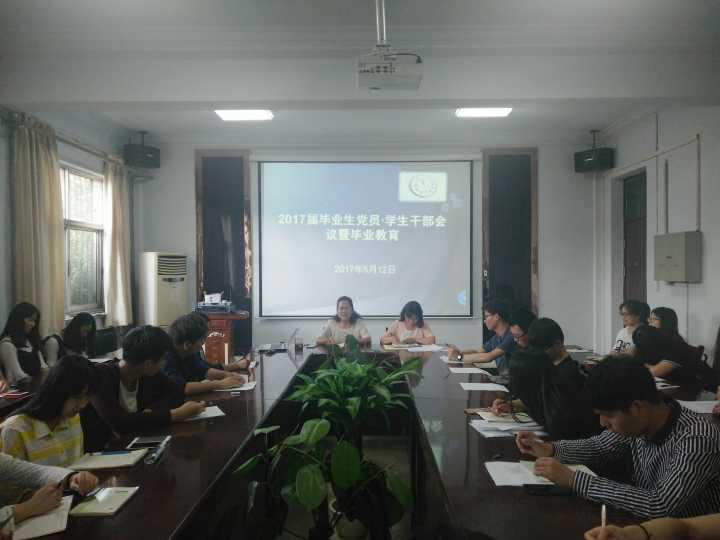2017年5月12日下午,金年会jinnianhuicom在院会议室召开了毕业班全体学生干部及学生党员会议暨毕业教育。金年会jinnianhuicom党总支副书记刘瑛出席会议,2017届毕业班辅导员、毕业班全体学生干部及学生党员参加会议。会议由2013级辅导员郭家瑞主持。