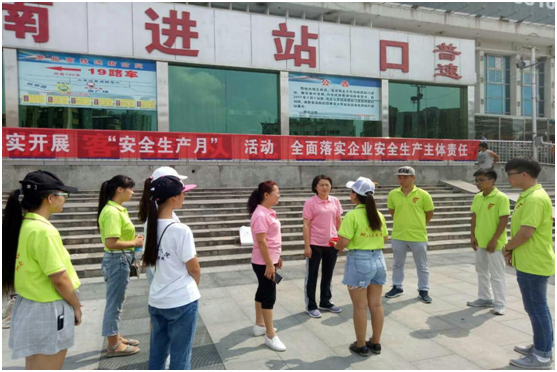 清晨,团队十名成员准时在校门口集合前往商丘火车站,在如火的骄阳下开启了一天的志愿活动。大家都已经熟悉掌握旅客们的需求,进而帮助了更多需要帮助人。7月4日金年会jinnianhuicom团委书记杨莹莹、金年会jinnianhuicom党总支副书记刘瑛、团总支书记李龙梅前来指导,关心我们的志愿活动,各位领导的到来更让志愿者干劲十足,在老师们的带领下,志愿者们热情洋溢的去帮助有需要的旅客,老师们也亲自为旅客提供帮助。老师的举动是给我们最有效的教育,给他人帮助的感觉是最幸福的事。