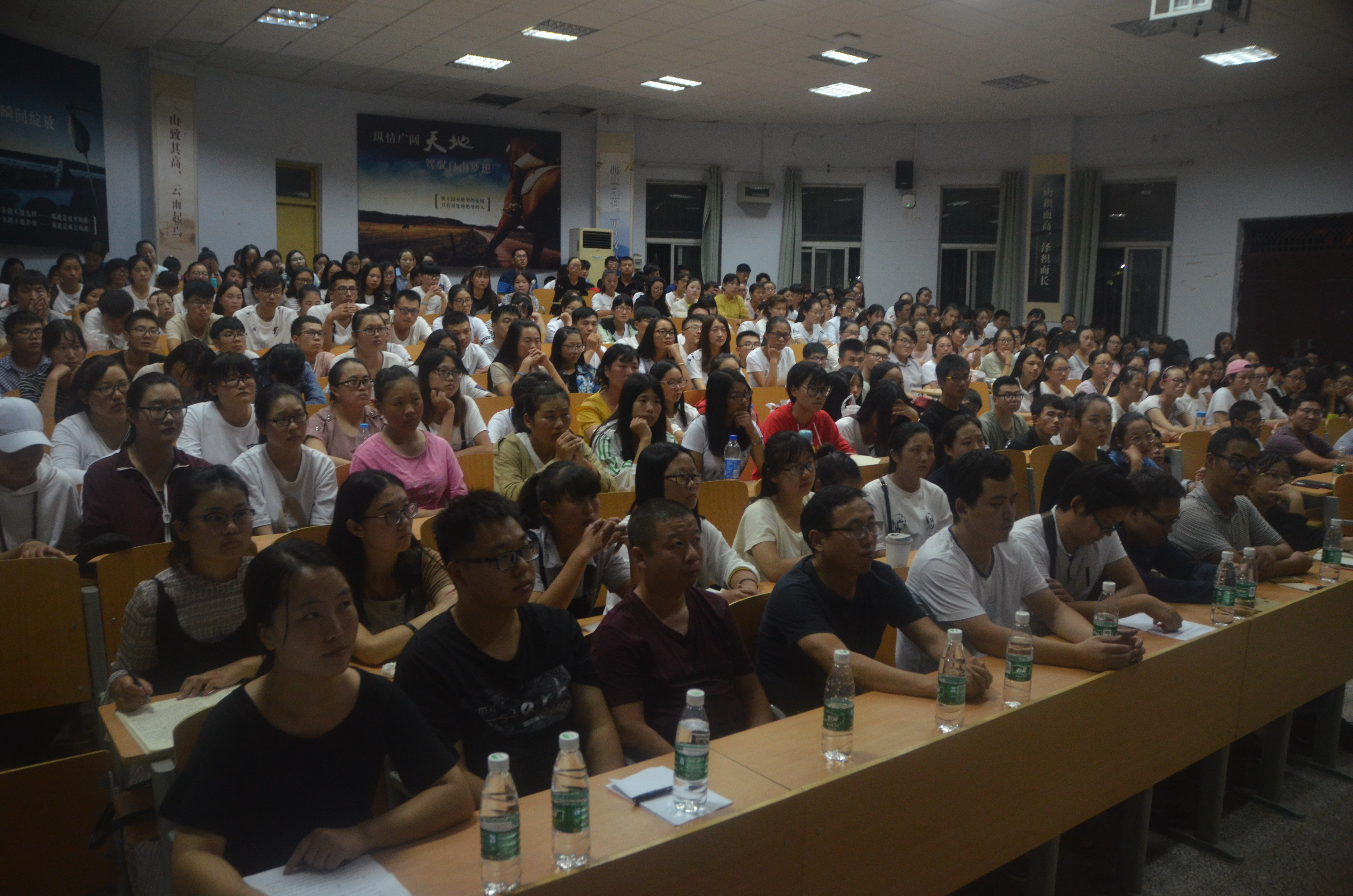 9月18日晚,金年会jinnianhuicom于文化路校区电子电气工程学院楼报告厅举行了“2017级新生开学典礼暨入学教育大会”,金年会党总支书记韩忠民、院长瞿鹏、党总支副书记刘瑛、副院长孟团结、团总支书记李龙梅、办公室主任姬红彬、教学办公室主任胡春华、教师代表张付力以及各年级辅导员、各班班主任出席了此次会议,金年会新生各班带班班主任及2017级全体新生参加了此次会议,大会由副书记刘瑛主持。