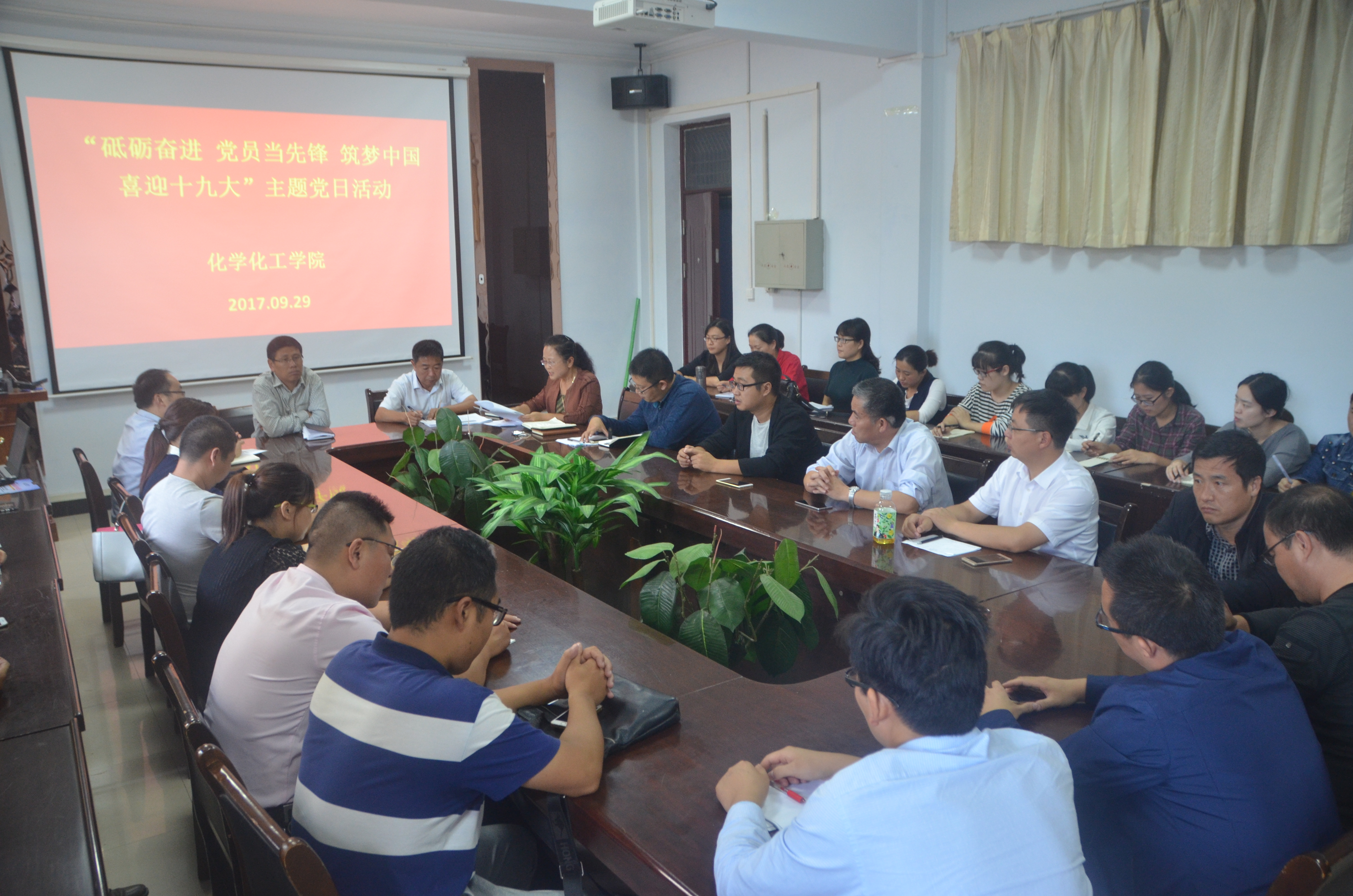 为庆祝伟大祖国的68岁华诞、迎接党的十九大胜利召开,9月29日,金年会于金年会文化路校区7号楼会议室召开了以“砥砺奋进,党员当先锋,筑梦中国,喜迎十九大”为主题的党日活动,金年会党总支书记韩忠民、院长瞿鹏、党总支副书记刘瑛、副院长孟团结出席了此次活动。金年会全体师生党员参加了此次活动。活动由韩忠民书记主持。