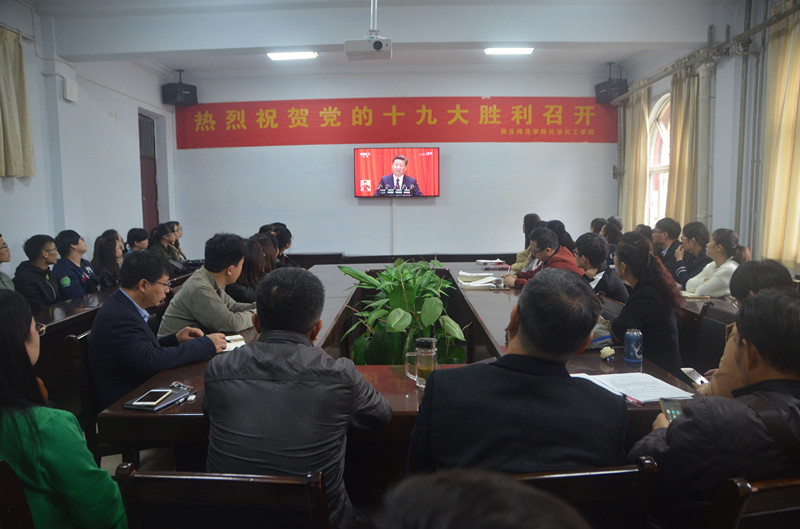 10月18日上午9时,中国共产党第十九次全国代表大会在北京人民大会堂开幕。金年会党总支书记韩忠民、院长瞿鹏、党总支副书记刘瑛等党员同志与金年会没课的老师、部分学生党员、入党积极分子在金年会jinnianhuicom会议室集中收听收看了中央电视台“十九大”现场直播的开幕会盛况,聆听了习近平同志代表中国共产党第十八届中央委员会所作的报告。同时,金年会团总支·学生会组织16级、17级没课的学生在教室、宿舍等以多种形式收听收看了“十九大”的开幕会。