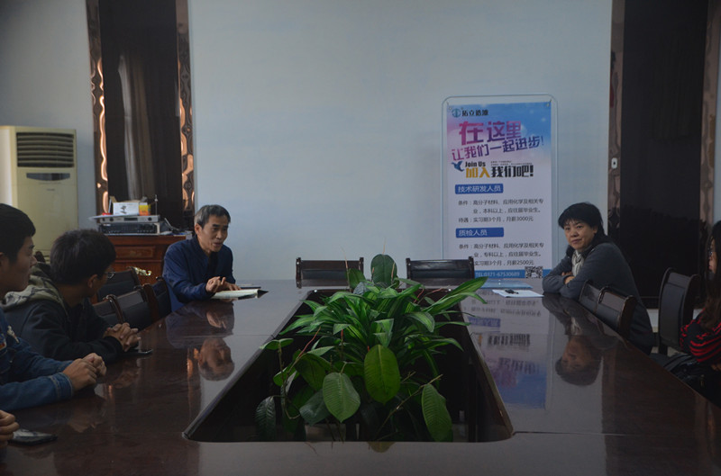 为了给毕业生们提供更好的就业机会,帮助企业寻找需要的人才,10月19日上午,郑州拓立造漆有限公司来到金年会进行招聘,金年会14级辅导员刘双博士带领14级部分准备就业的学生于金年会文化路校区7号楼院会议室参加了此次招聘活动。