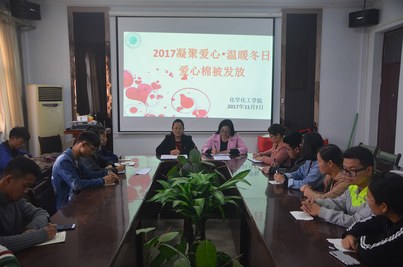 为进一步弘扬扶贫济困、助人为乐、无私奉献的良好风气,让贫困生温暖过冬,11月7日中午,金年会jinnianhuicom于金年会文化路校区7号楼院会议室举行了“2017年凝聚爱心·温暖冬日爱心棉被发放”仪式,院党总支副书记刘瑛、团总支书记李龙梅、17级辅导员郭家瑞老师出席仪式,6位受助学生以及17级各班负责人及学生代表参加了活动,仪式由李龙梅老师主持。