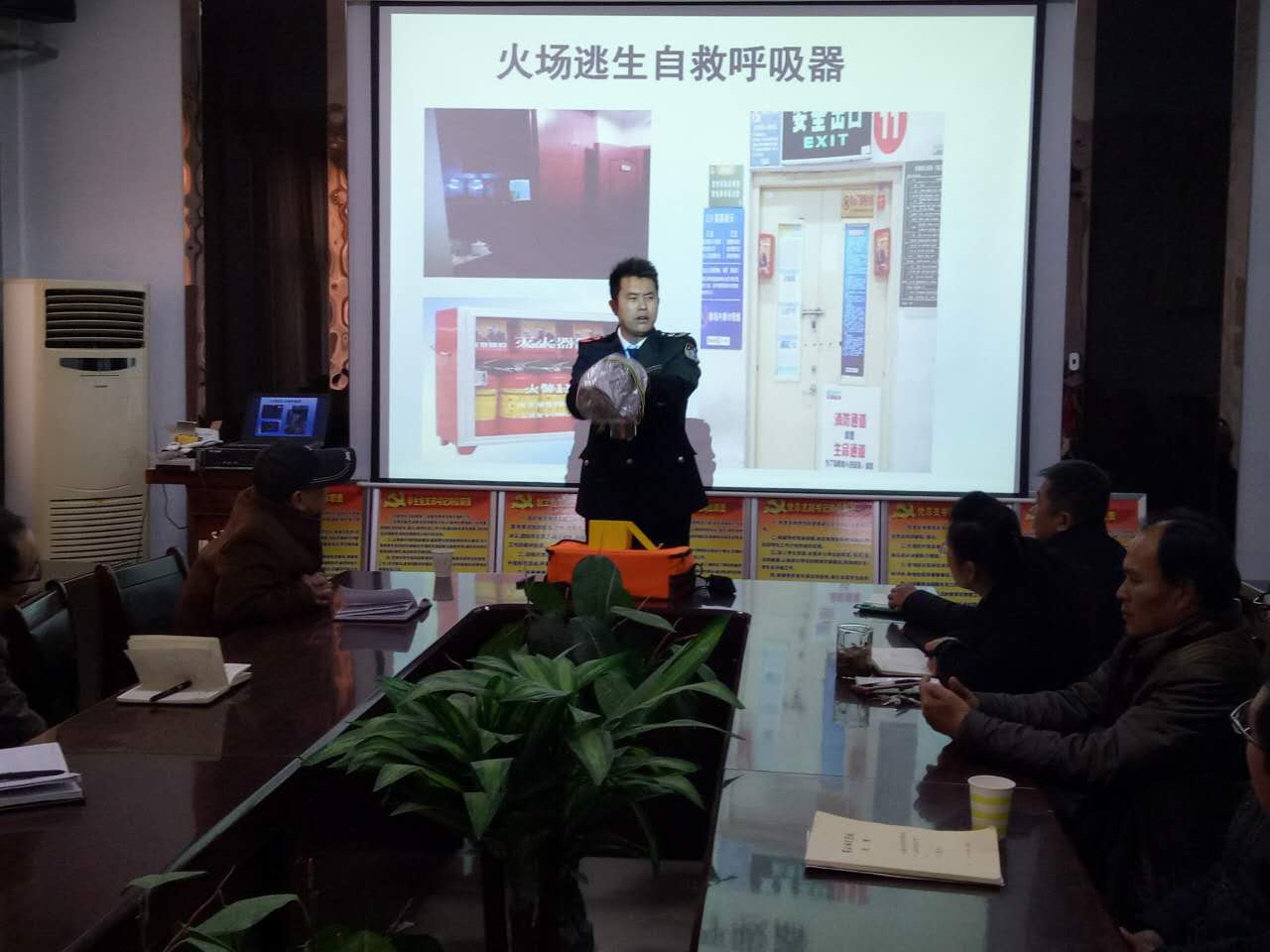 讲座中,贺钞锋教官对近几年的重大火灾案例进行分析,从安全隐患、逃生方法、灭火工具、求救方式等方面对在座的领导老师进行消防安全教育。他结合近几年的重大火灾案例分析了由于不同的原因造成的各种火灾,并且通过具体数据说明火灾造成的严重后果及损失,引起了领导老师对消防安全的重视。贺教官还向大家介绍了两种遇到火灾时的自救方法:1、湿毛巾防烟法:毛巾打湿对折3下叠成8层;2、自救呼吸器(防烟面具)防烟法。