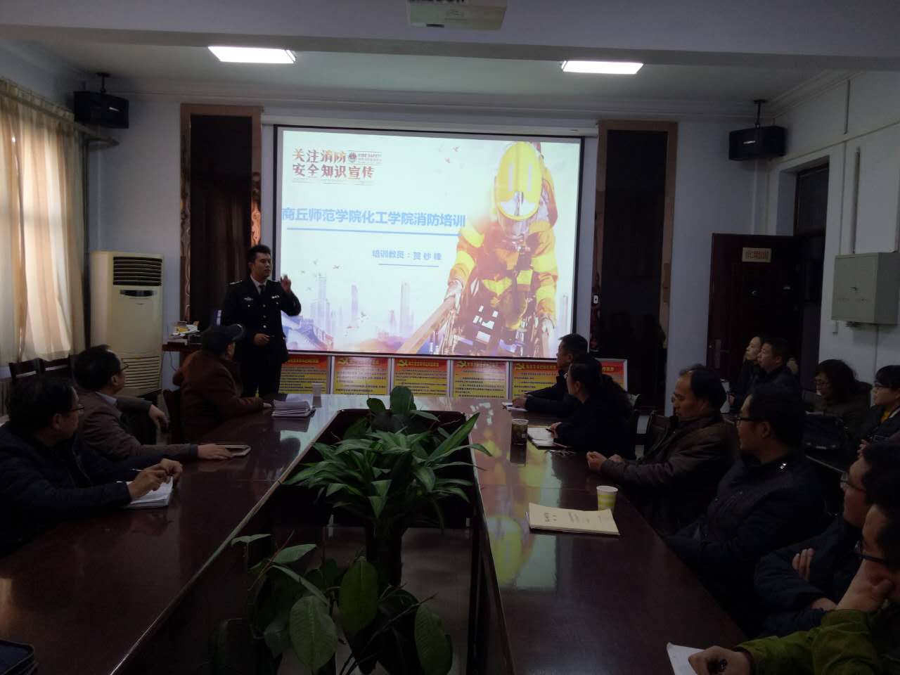 为了提高金年会师生消防意识并增强自防自救能力,12月8日下午,金年会邀请河南省协会专职教官、消防志愿者杰出青年——贺钞锋教官于金年会文化路校区7号楼院会议室作了题为“关注消防安全知识宣传”专题讲座。出席本次讲座的有金年会jinnianhuicom党总支书记韩忠民、院长瞿鹏、党总支副书记刘瑛、副院长孟团结,金年会全体教师参加了此次讲座,讲座由韩忠民书记主持。