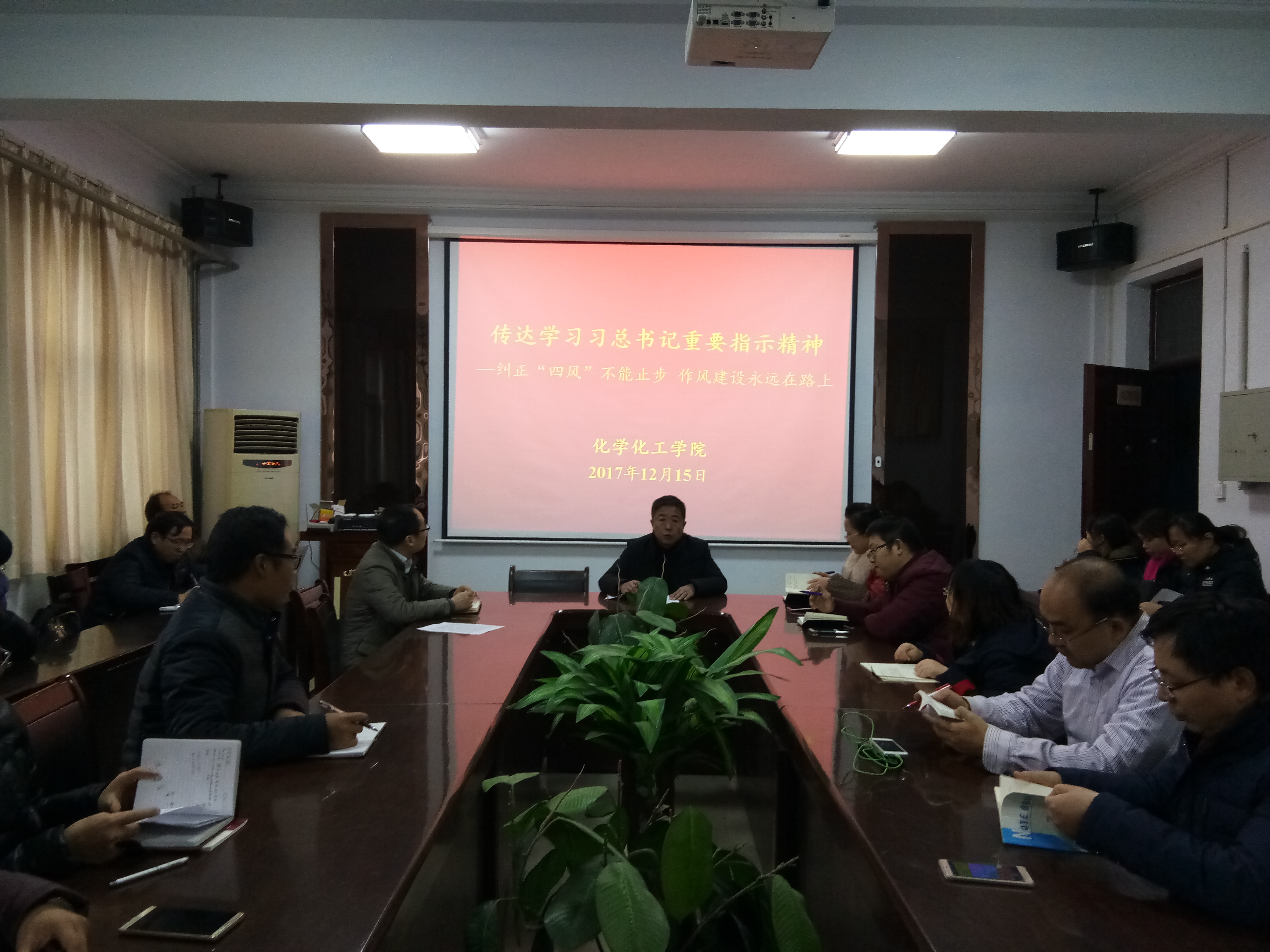 12月15日,金年会jinnianhuicom于金年会文化路校区7号楼会议室召开“传达学习习近平总书记重要指示―纠正‘四风’不能止步,作风建设永远在路上”专题学习会议。院党总支书记韩忠民、副书记刘瑛、副院长孟团结出席了此次会议,会议由院党总支书记韩忠民主持。
