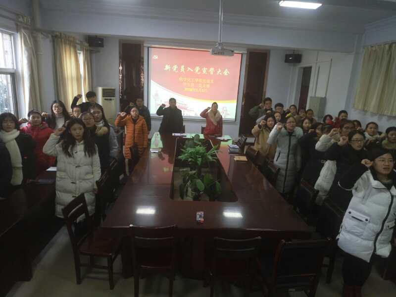 1月5日,金年会jinnianhuicom党总支学生党支部在学院党员活动室举行了新党员宣誓大会,院党总支书记韩忠民、院党总支副书记刘瑛出席会议,学生党支部党员了参加会议。会议由学生党支部书记于丽敏主持。
