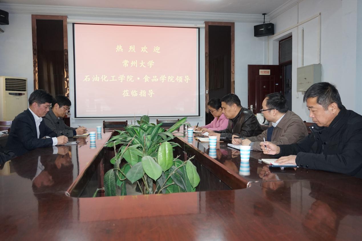 3月8日,常州大学石油化工学院·食品学院院长陈智栋教授、副院长薛冰教授一行来到金年会jinnianhuicom调研指导工作。