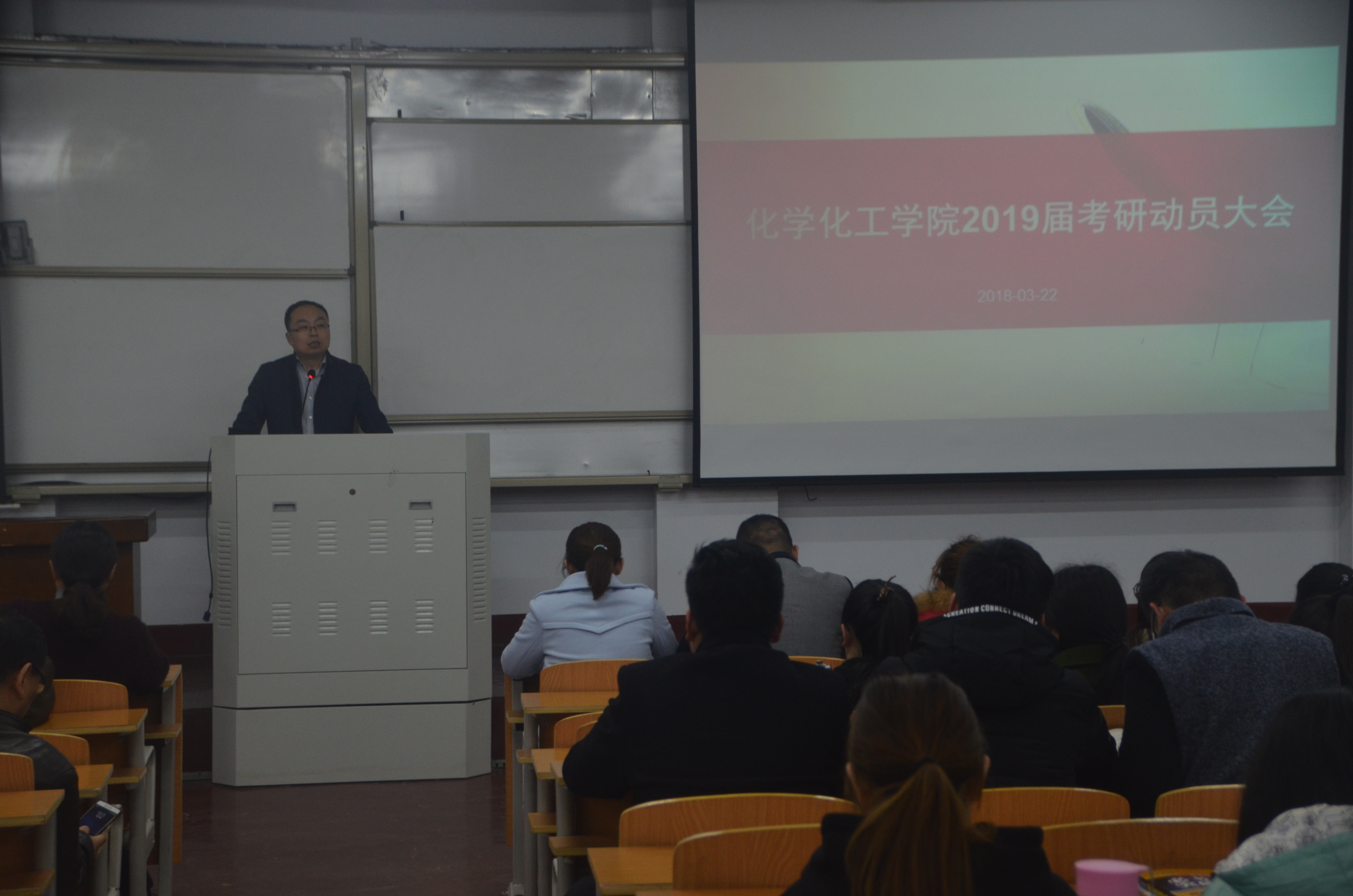 3月22日晚七点,金年会jinnianhuicom在文化路校区1号楼208教室召开了“金年会jinnianhuicom2019届考研动员大会”。院长瞿鹏、副院长孟团结、15级辅导员于丽敏及各班班主任出席了此次大会,金年会有考研意向的同学参与了此次会议,大会由副院长孟团结主讲。