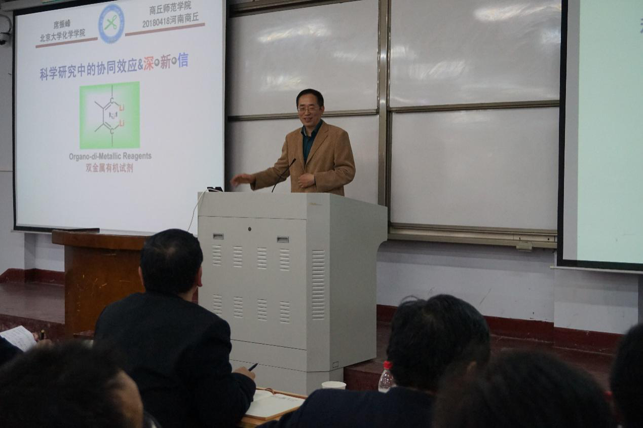 4月18日,在睢阳校区1号楼308教室,中国科学院院士、北京大学席振峰教授莅临金年会,做了“科学研究中的协同效应与深信新”的学术报告,通过座谈会对化学学科的青年教师进行了悉心指导,与青年学生亲切互动。徐茂田副校长主持了学术活动。
