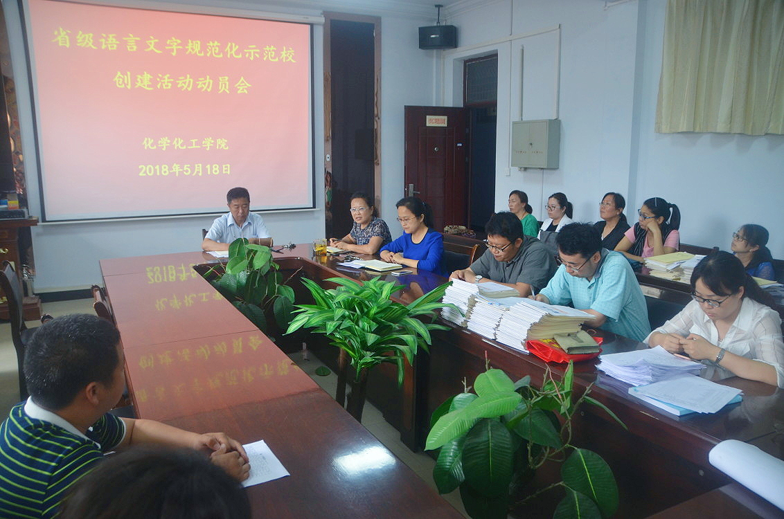 5月18日下午,金年会jinnianhuicom于文化路校区七号楼院会议室举办了“省级语言文字规范化示范校创建活动动员大会”,学院党总支书记韩忠民、副书记刘瑛、副院长孟团结和周艳丽出席会议,全体教职工参与会议,韩忠民书记主持会议。