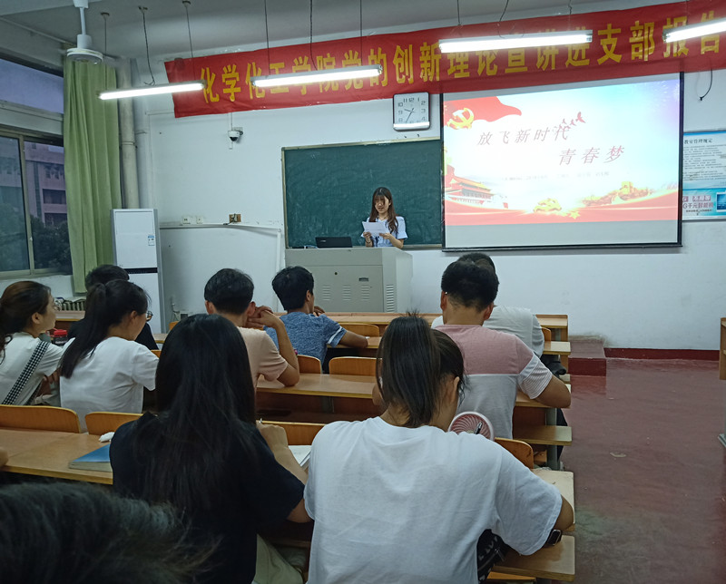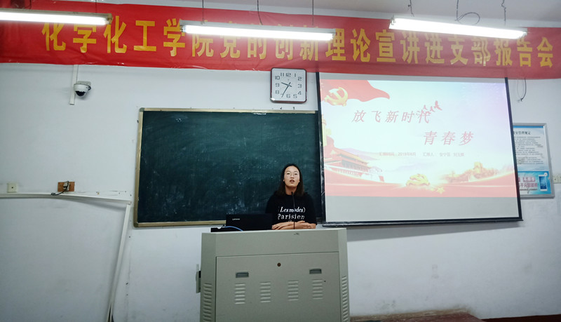 为了认真学习、宣传、贯彻习近平新时代中国特色社会主义思想和党的十九大精神,扎实推动党的创新理论成果深入人心。6月4日晚上七点半,金年会jinnianhuicom于文化路校区1号教学楼405教室举办“党的创新理论宣讲进支部”报告会,化工17-1、材料17-1班同学参加此次活动,本次报告会由团总支副书记王宇杰主持。