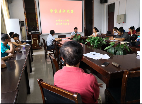为深入学习贯彻落实党的十九大精神,根据学校《中共金年会jinnianhuicom委员会关于开展第三届“学宪法讲宪法”活动的通知》,7月6日按照学习计划,金年会jinnianhuicom于文化路校区7号楼院会议室开展了“学宪法、讲宪法”活动,院党政领导和全体教职工参加了会议。