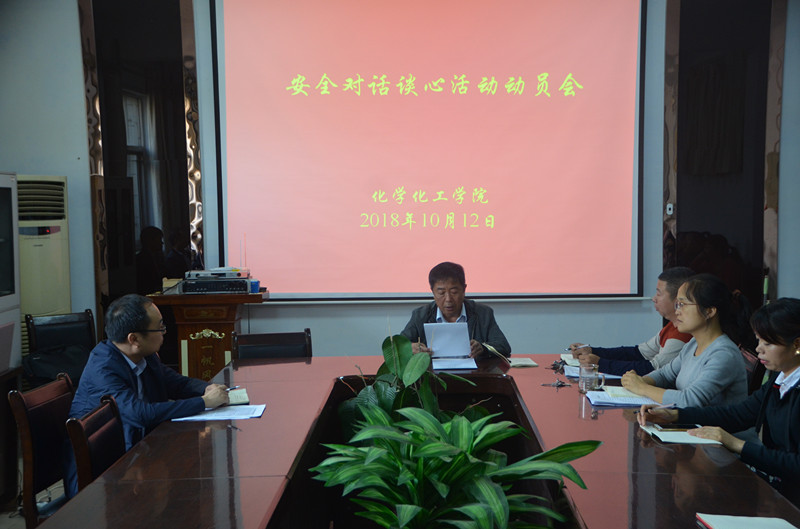 10月12日下午,金年会jinnianhuicom于文化路校区7号楼会议室召开安全对话谈心活动动员会。会议由学院党总支书记韩忠民主持,副院长孟团结、周艳丽出席,全体教职工参加。
