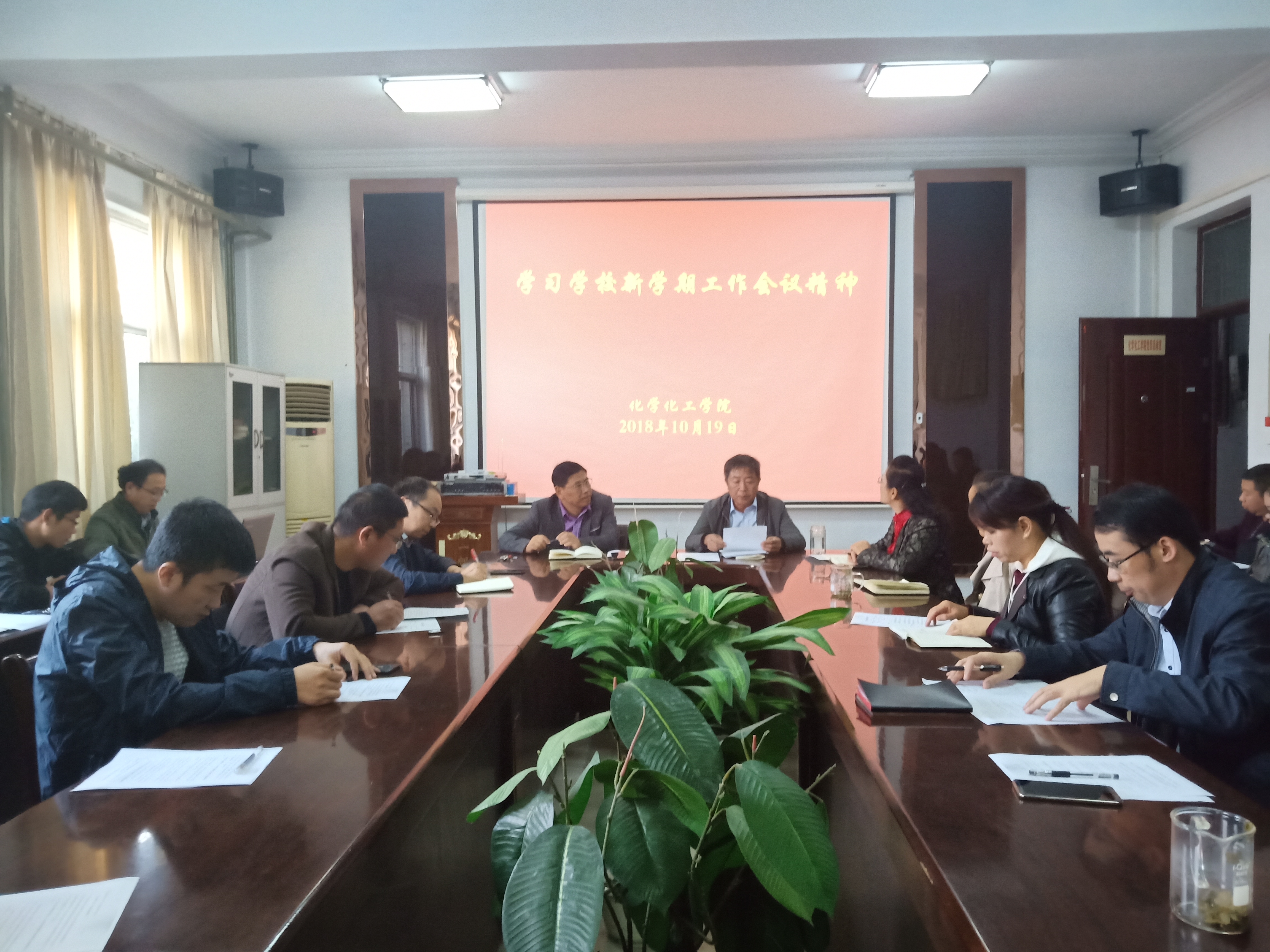 10月19日下午,金年会jinnianhuicom于睢阳校区7号楼会议室学习学校新学期工作会议精神,院长瞿鹏、党总支副书记刘瑛、副院长孟团结、周艳丽出席,全体教职工参加会议。会议由院党总支书记韩忠民主持。