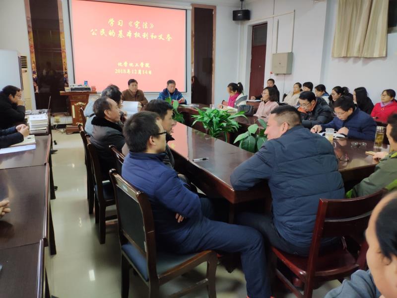 12月14日下午,金年会jinnianhuicom于睢阳校区7号楼会议室召开教职工会议,集中学习《宪法》之公民基本权利和义务,会议由学院党总支书记韩忠民主持。