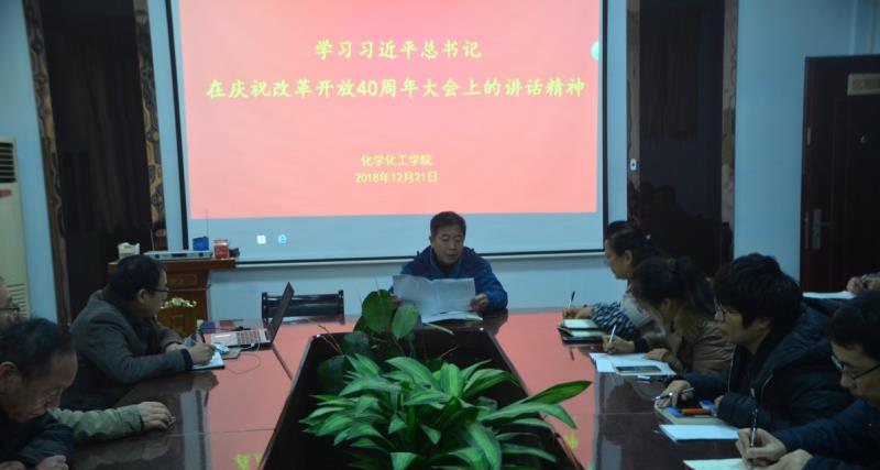 12月21日下午,金年会jinnianhuicom于睢阳校区7号楼会议室召开全体教职工大会,学习“习近平总书记在庆祝改革开放40周年大会上的讲话精神”。全体教职工参加会议,会议由党总支书记韩忠民主持。