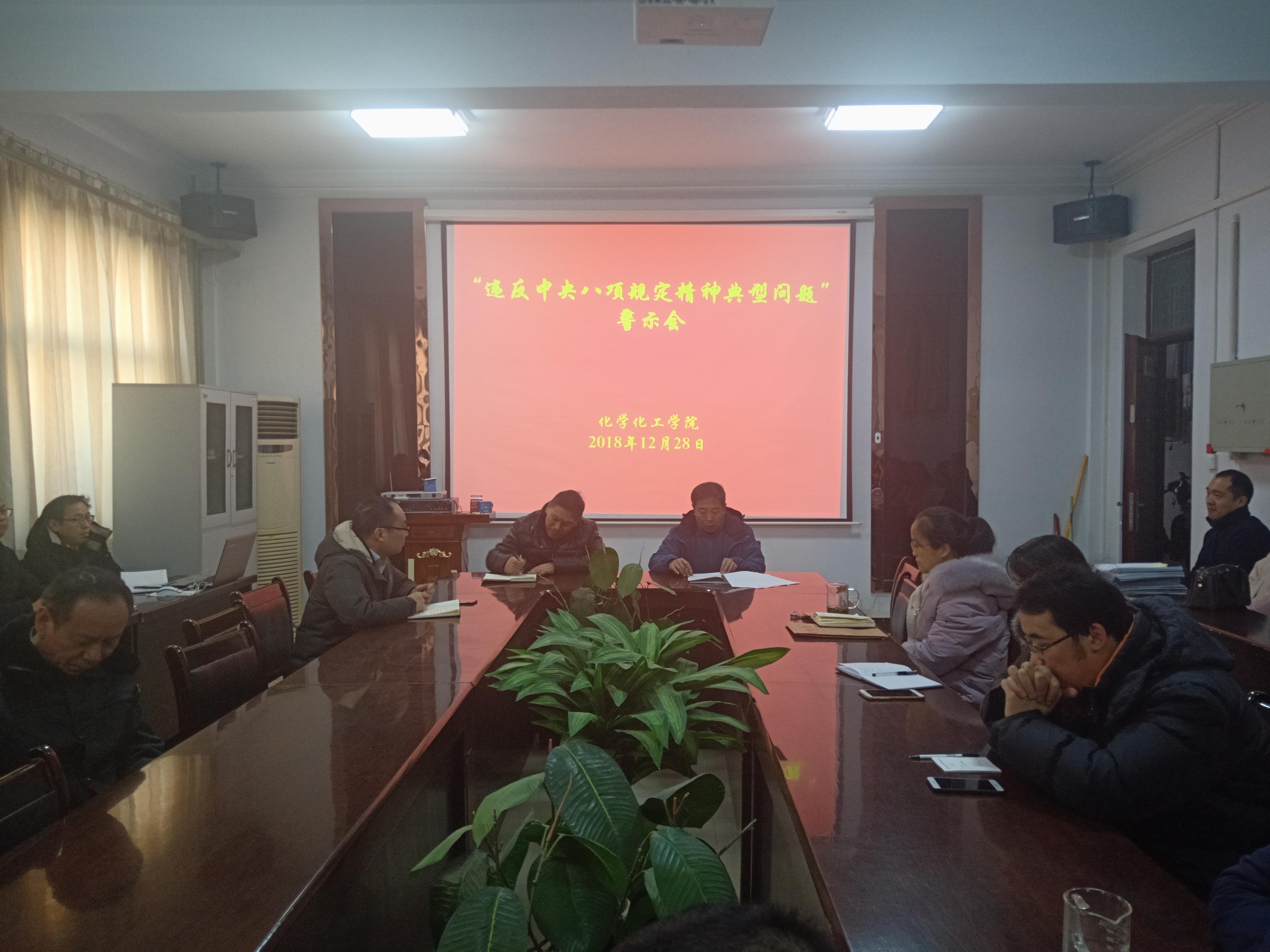 2019年元旦、春节将至,为做好“双节”工作,12月28日下午,金年会jinnianhuicom于睢阳校区7号楼院会议室召开 “违反中央八项规定精神典型问题警示会”, 全体教职工参加,党总支书记韩忠民主持。