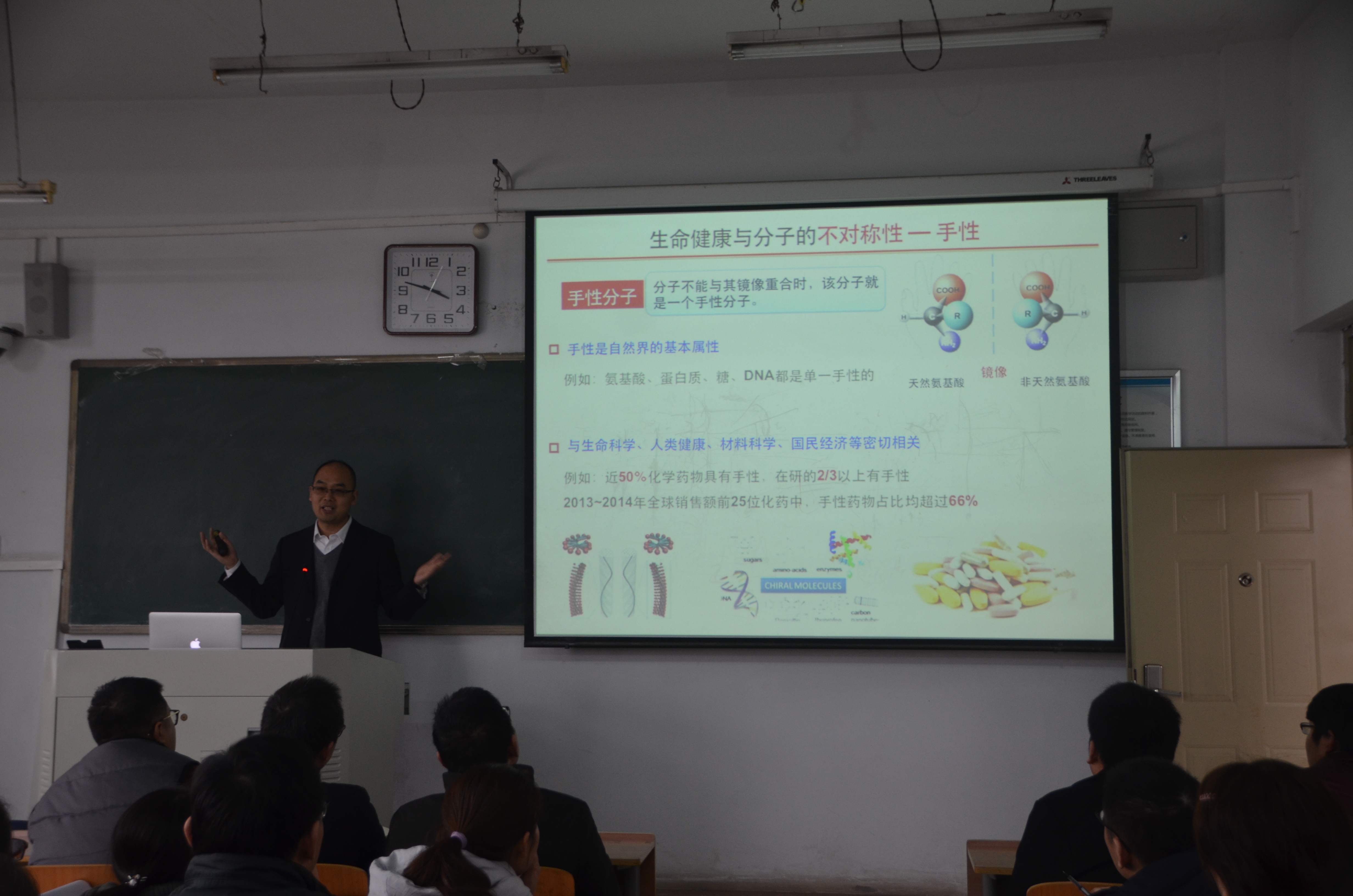 3月1日上午,应金年会邀请,复旦大学博士生导师孙兴文教授在文化路校区1号教学楼411教室作了题为《含氮手性化合物的不对称合成研究》学术报告。报告会由刘澜涛教授主持,金年会jinnianhuicom部分师生聆听了报告。
