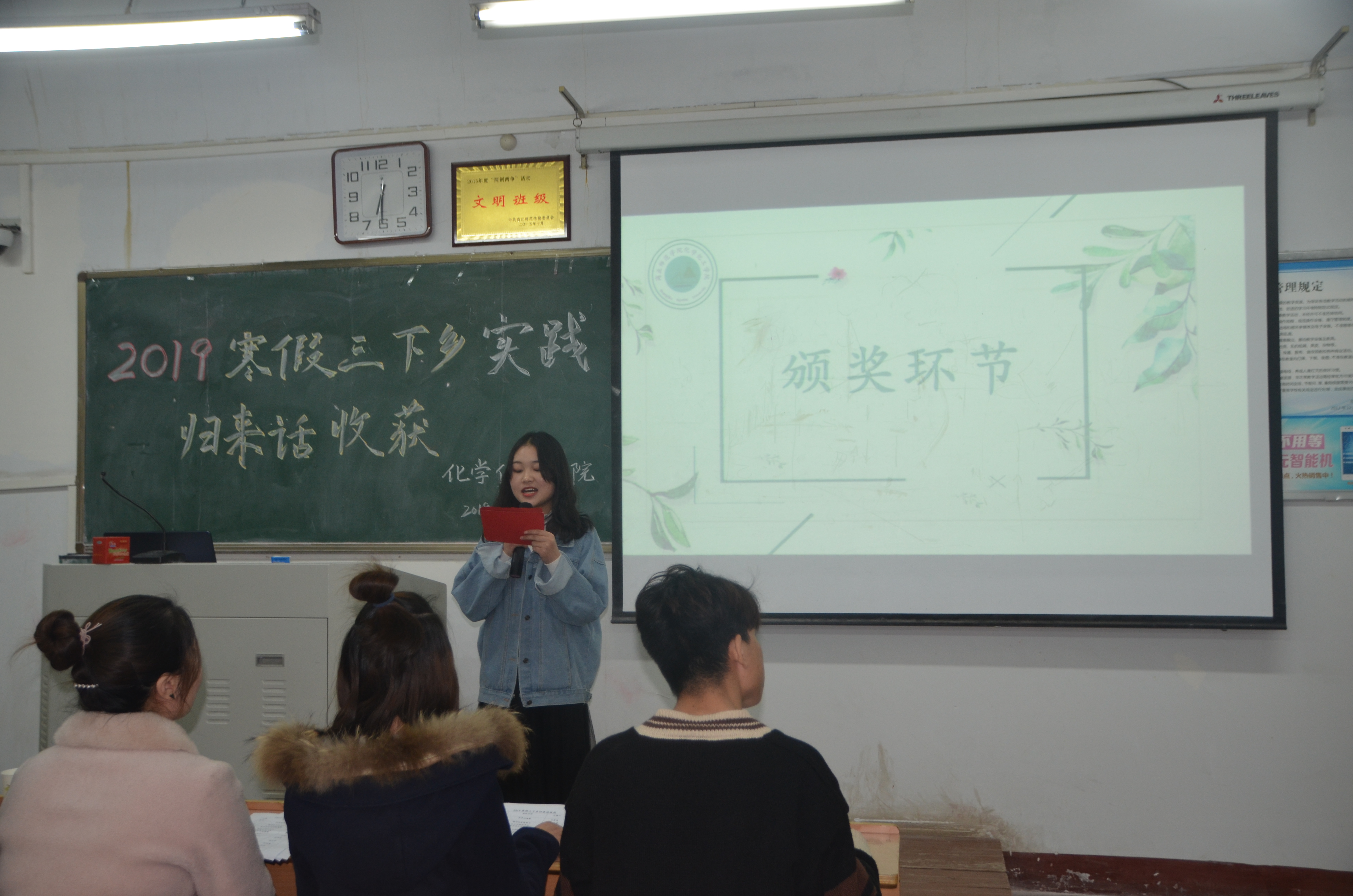 活动在主持人慷慨激昂的开场白中拉开序幕,各位汇报人以PPT和短视频的形式全方位展示了团队的实践内容与成果,不论是社会调研,还是社会实践,亦或是志愿服务,队员们都全力以赴,力争完美。
