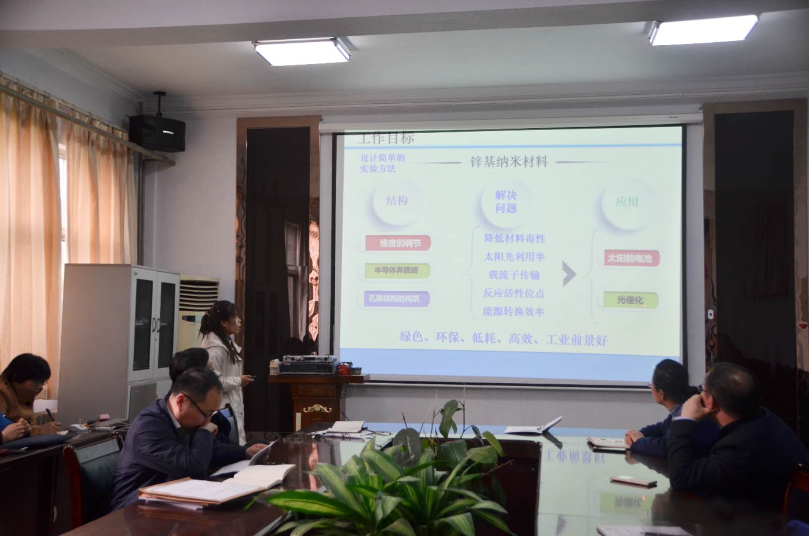 2019年3月29日下午,金年会jinnianhuicom教师王立晶博士在文化路校区7号楼院会议室做了题为《锌基环境友好纳米材料的设计与合成及其能源转换与利用》的学术报告会。报告会由瞿鹏院长主持,金年会jinnianhuicom全体老师参加了报告会。