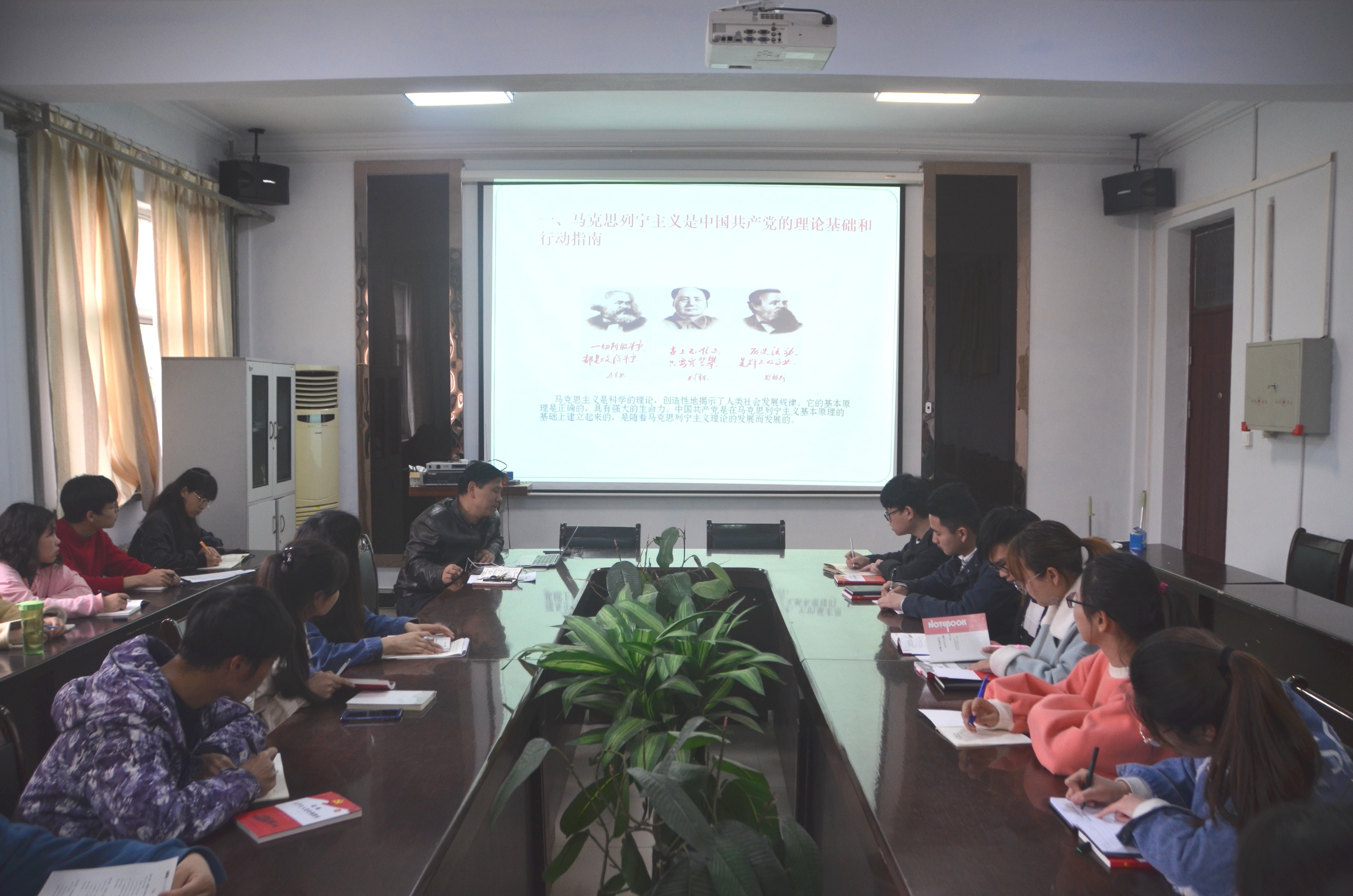 为了贯彻党的行动指南,践行党的理论方针,4月12日,金年会jinnianhuicom于睢阳校区7号楼会议室进行入党积极分子中级培训系列主题党课第三讲“一脉相承、与时俱进——中国共产党的指导思想”。学院全体中级入党积极分子参加,院长瞿鹏主讲。