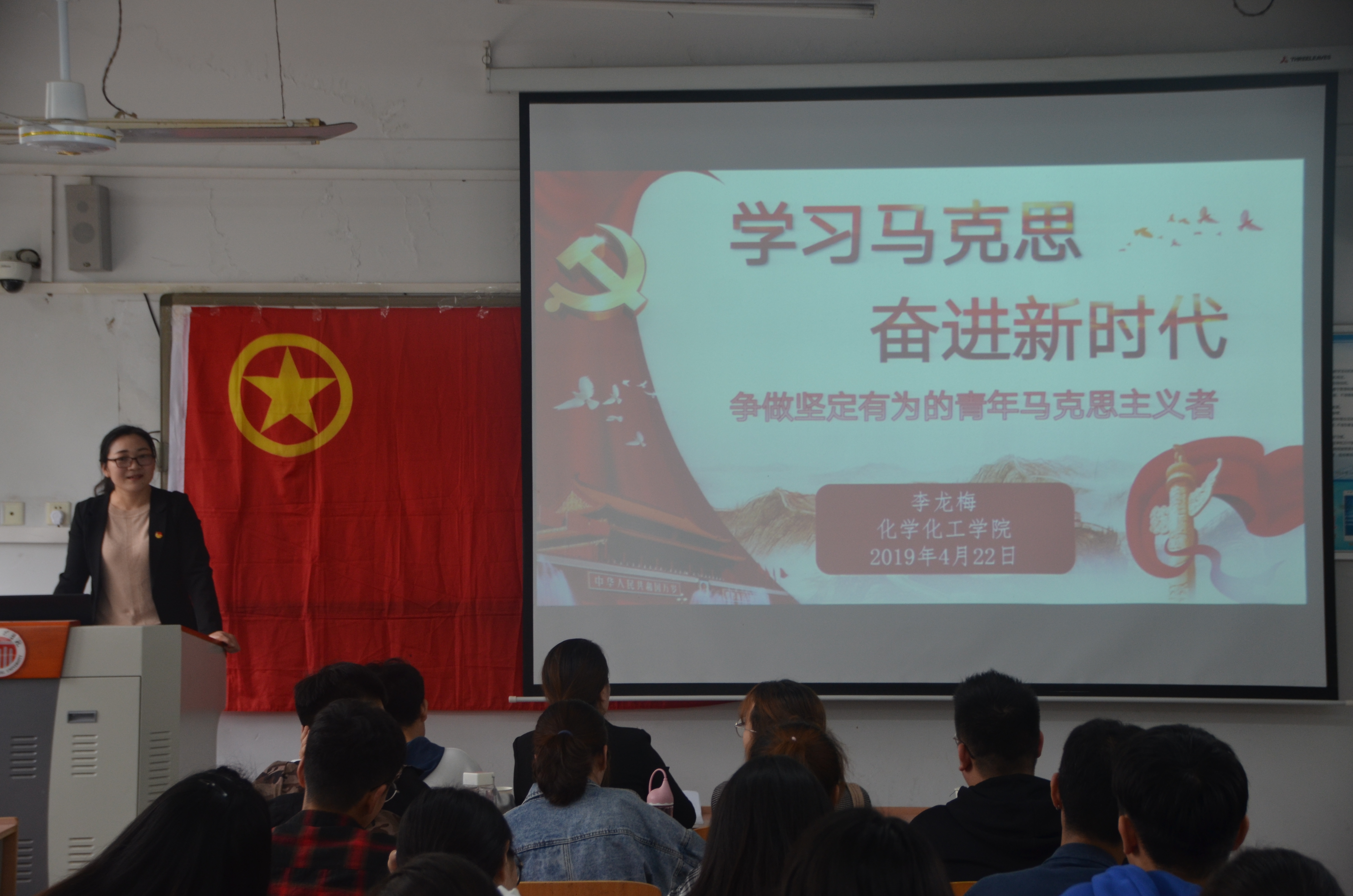 李龙梅首先和学员们一起观看了《开卷有理》马克思靠谱第一季---飞扬吧!青春节目,节目中主要讲述了马克思的求学、恋爱和工作经历,让在座的学员们更加深入的了解了马克思的一生。然后又从自觉坚持习近平新时代中国特色社会主义思想、广大青年要争做新时代青年马克思主义者、发挥党的助手和后备军作用三个方面展开了讲述,并且向同学们特别强调了为实现中华民族伟大复兴的中国梦而奋斗,是中国青年的时代主题;全程参与,亲身建设社会主义现代化强国,是当代中国青年的时代责任。